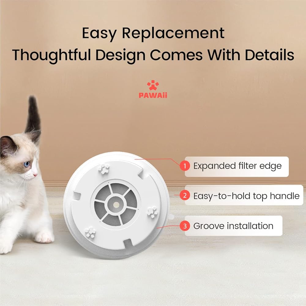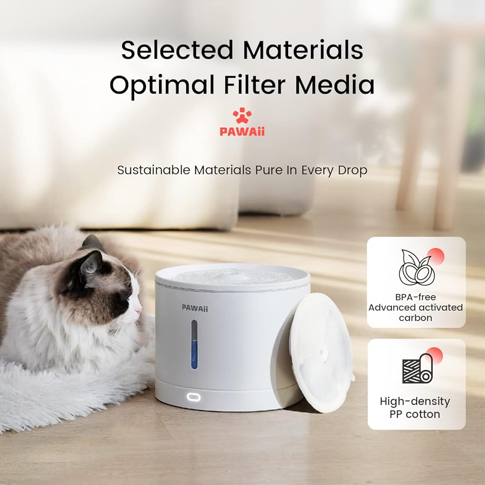 𝟓-𝐬𝐭𝐚𝐠𝐞 𝐟𝐢𝐥𝐭𝐫𝐚𝐭𝐢𝐨𝐧, 𝐩𝐮𝐫𝐢𝐭𝐲 𝐢𝐧 𝐞𝐯𝐞𝐫𝐲 𝐝𝐫𝐨𝐩: The drinking fountain for cats inside adopts 5-stage filtration. The pet fountain can effectively flush away hair and food residues on the surface by non-woven fabric and physical filtration, reduce chlorine by premium coconut shell activated carbon and soften water by ion exchange resin (Please confirm whether you are allergic to coconut).