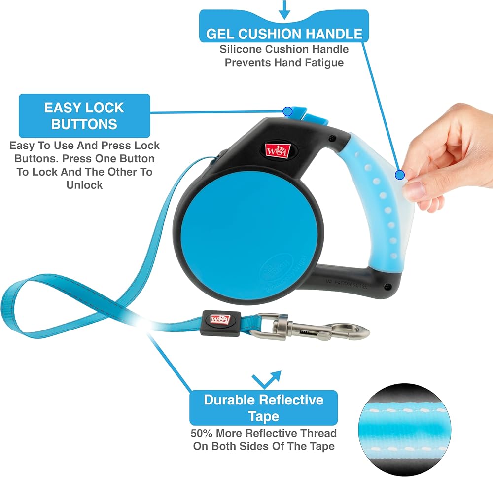 The new Wigzi Gel Retractable Dog Leash is the most comfortable retractable leash in the world. This special gel handle helps reduce hand fatigue and makes for a more enjoyable walking experience. Your hands will love you for it.