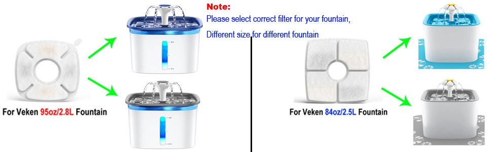 【Recommendations】To prevent the activated carbon dust from shedding into water, please soak the filter in water for 3 minutes and rinse it thoroughly under running water before use. According to your pet's drinking frequency and the number of pets using the fountain, Change a cat water fountain filter after using 2 to 4 weeks to keep water running fresh and clean.