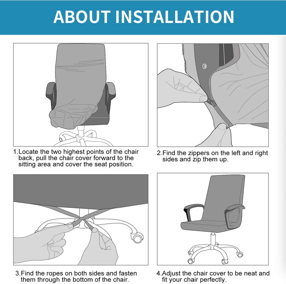 Easy Installation With Zipper: Zippers are designed on both chair back sides for facilitate fixation and using. You just need open both side zipper and slip on from office chair back, two ties under the bottom will keep it non slip.