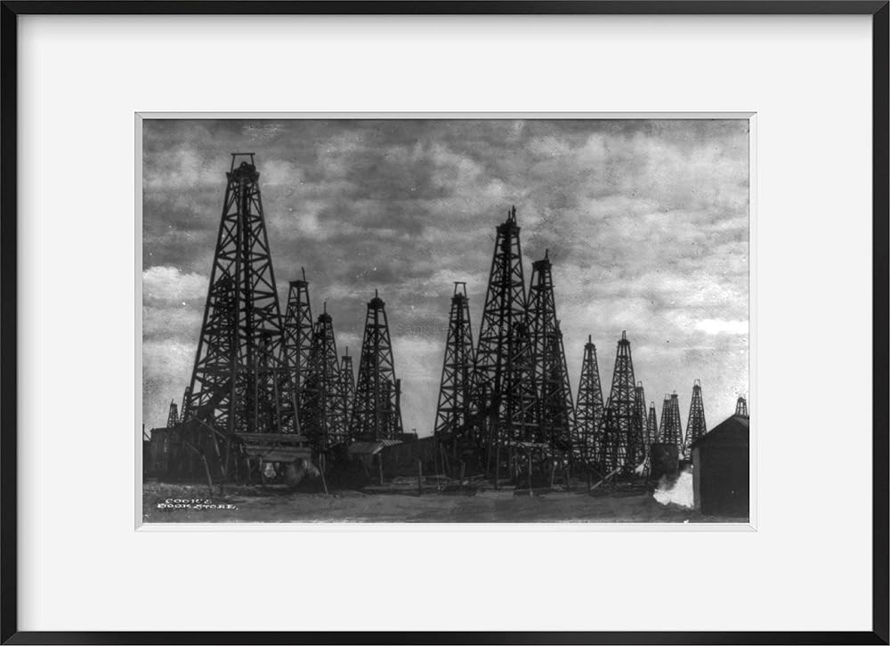 Historic Photograph of Spindle Top oil field, Beaumont, Texas Published: [between 1910 and 1930] | Summary: Photo shows oil wells and petroleum industry at Spindletop |