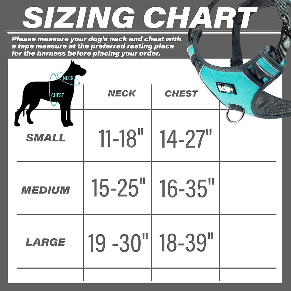 MEASURE! - Please measure your dog's neck and chest with a tape measure at the preferred resting place for the harness before placing your order. Please refer to the sizing chart within this listing.