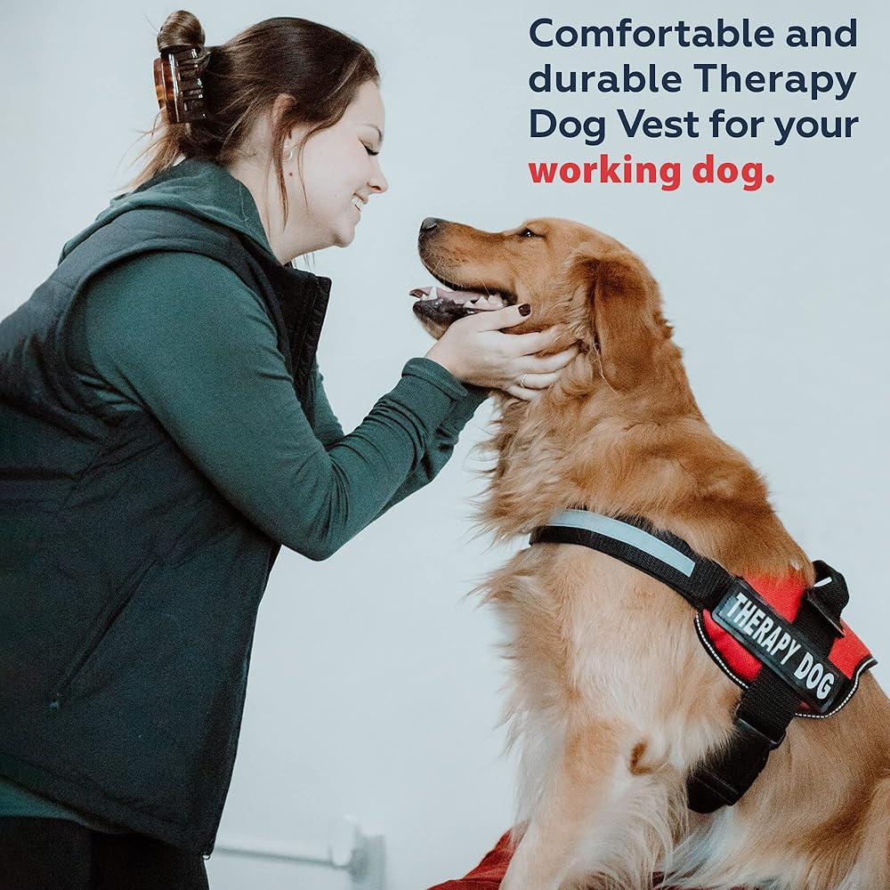 Made of durable, weatherproof polyester and features a quick release, adjustable belly strap for proper fit and comfort. Identify your Therapy Dog with a clear id tag makes work easier for you both.