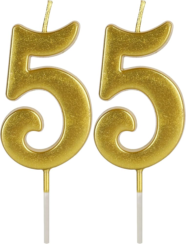 55th Birthday Candles for Cake Topper, Number 55 5 Glitter Premium Candle Party Anniversary Celebration Decoration for Kids Women or Men, Gold