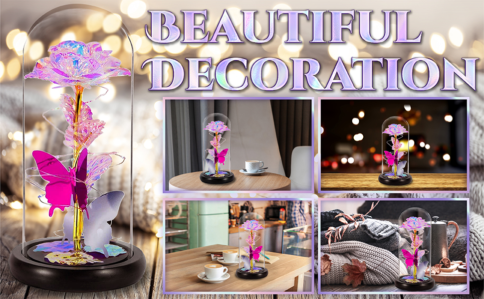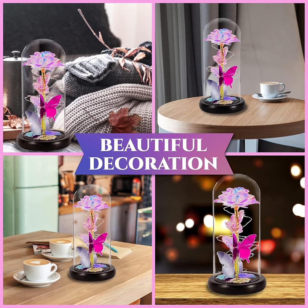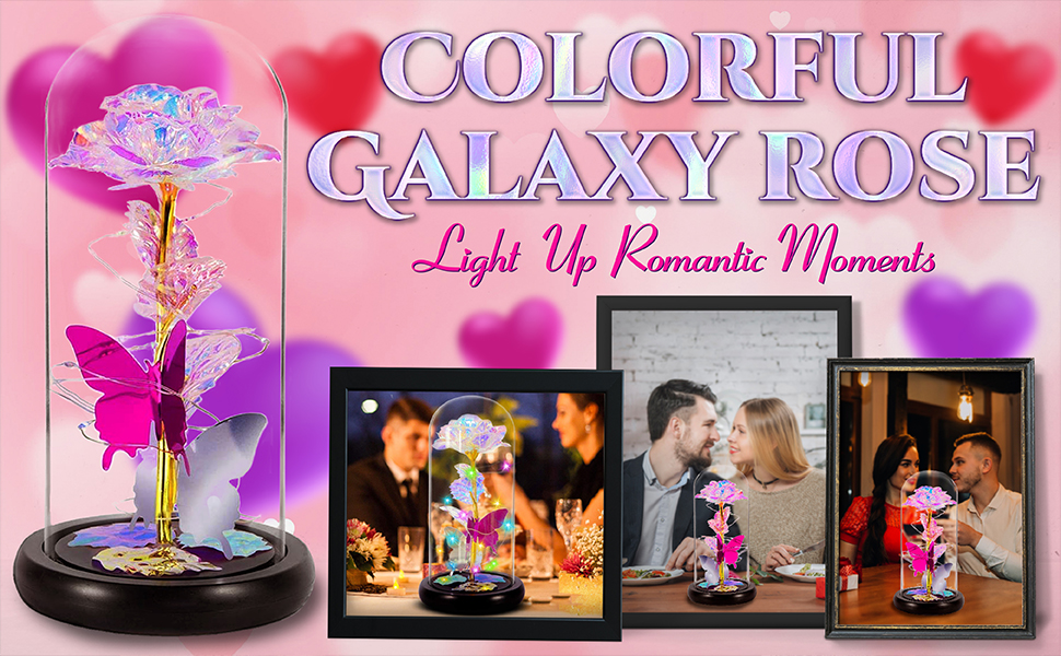 MOSKILA Galaxy Glass Rose Flower, Romantic LED Light Sweet Gifts - Her, Women, Girlfriend, Mom, Wife, Galaxy Enchanted Colorful Rose in Glass Dome - Valentines, Birthday, Christmas, Anniversary
