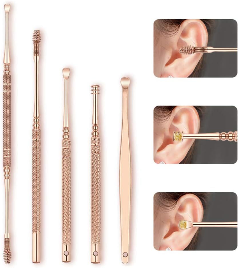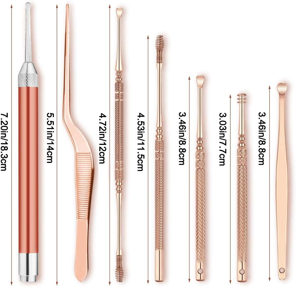 【Safe And Anti-slip Design】- The ear cleaning tools are made of medical grade stainless steel, durable and long-lasting for good ear hygiene. The handles are designed for a secure, anti-slip design. Elegant appearance, easy to control and more safe.