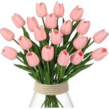 🌷Material - Light Floral Scent - Our real touch tulips silk flowers bouquets are made of real touch PU fabric combined with special floral fragrance adding process,so every tulip artificial flowers real touch that you receive will exude a light floral fragrance and these scents are non-toxic.artificial tulips stems are made with rubber and iron wire, natural touch and easy to bend and adjust,Great faux flowers for vase.