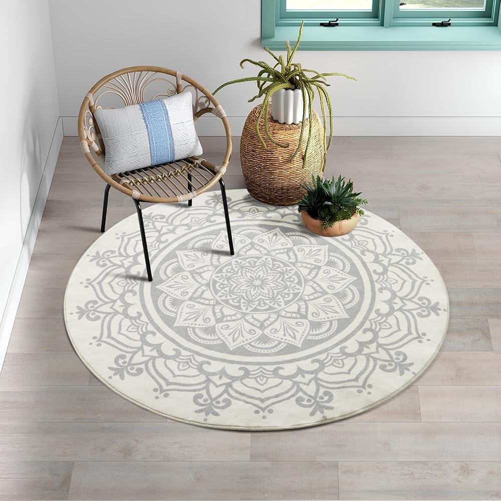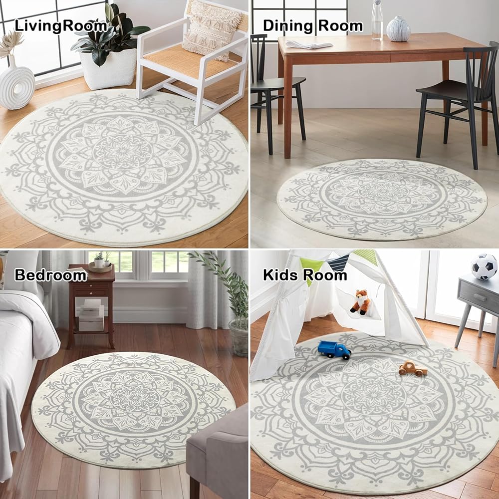 Lightweight Foldable Throw Rug --- Bohemian style round rug is easy to fold and unfold, more convenient for you to carry rug for multifunctional use, can be widely used in various indoor occasions, such as bathroom, entrance, kitchen, powder room, living room, bedroom, nursery and children's play room