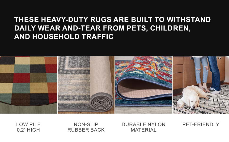 [ULTRA THIN]: A low pile thickness of 0.2 inches offers ideal functionality that is perfect for busy areas, underneath furniture, and in entryways as it will not obstruct doorways