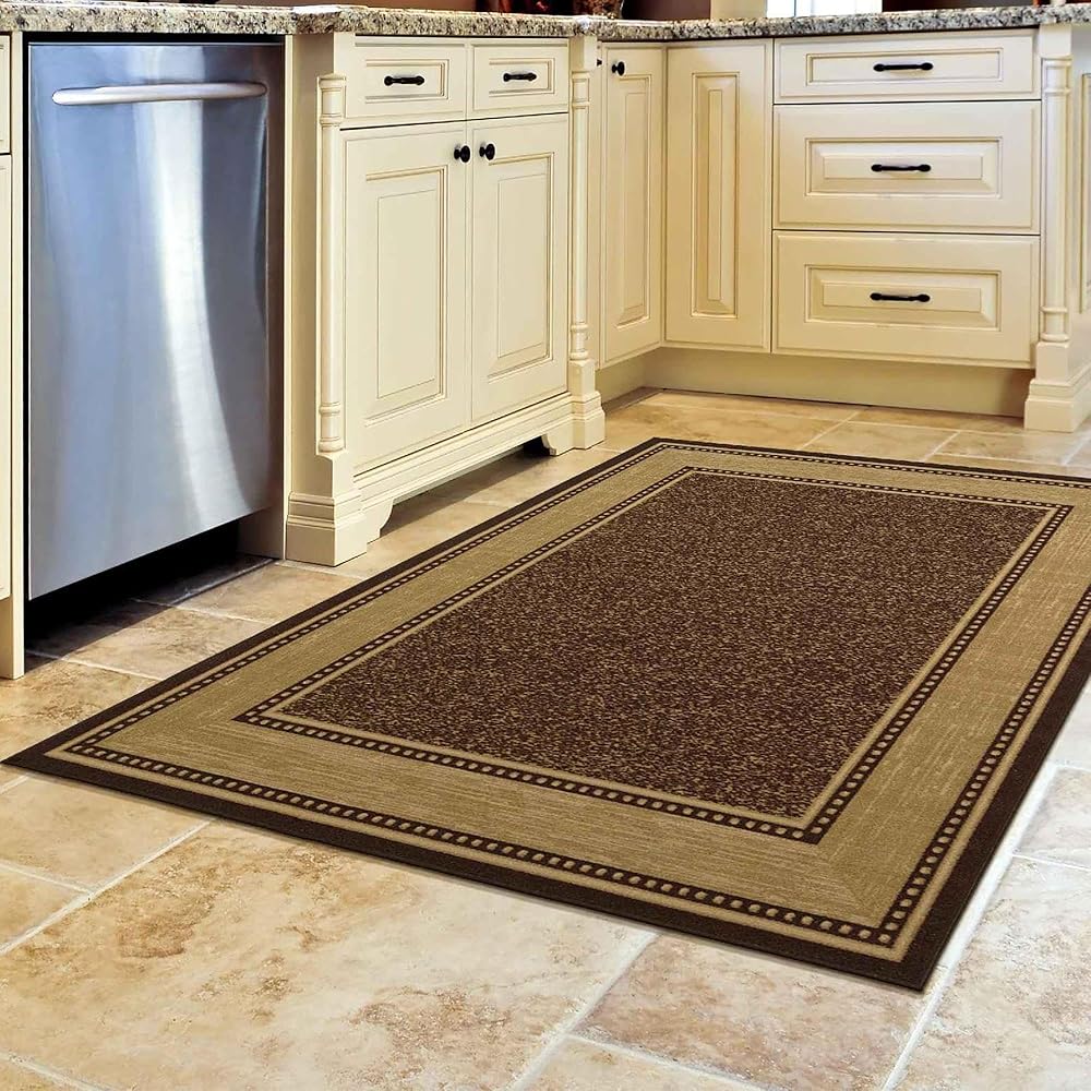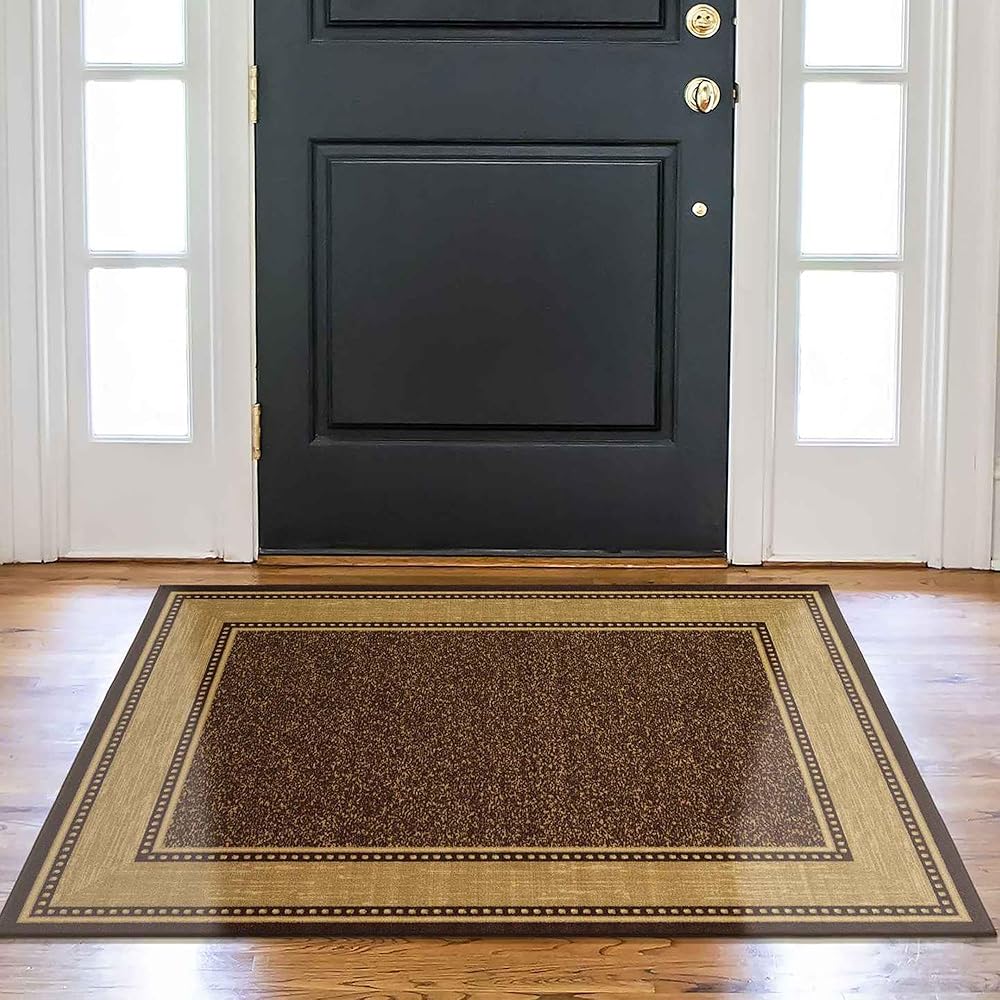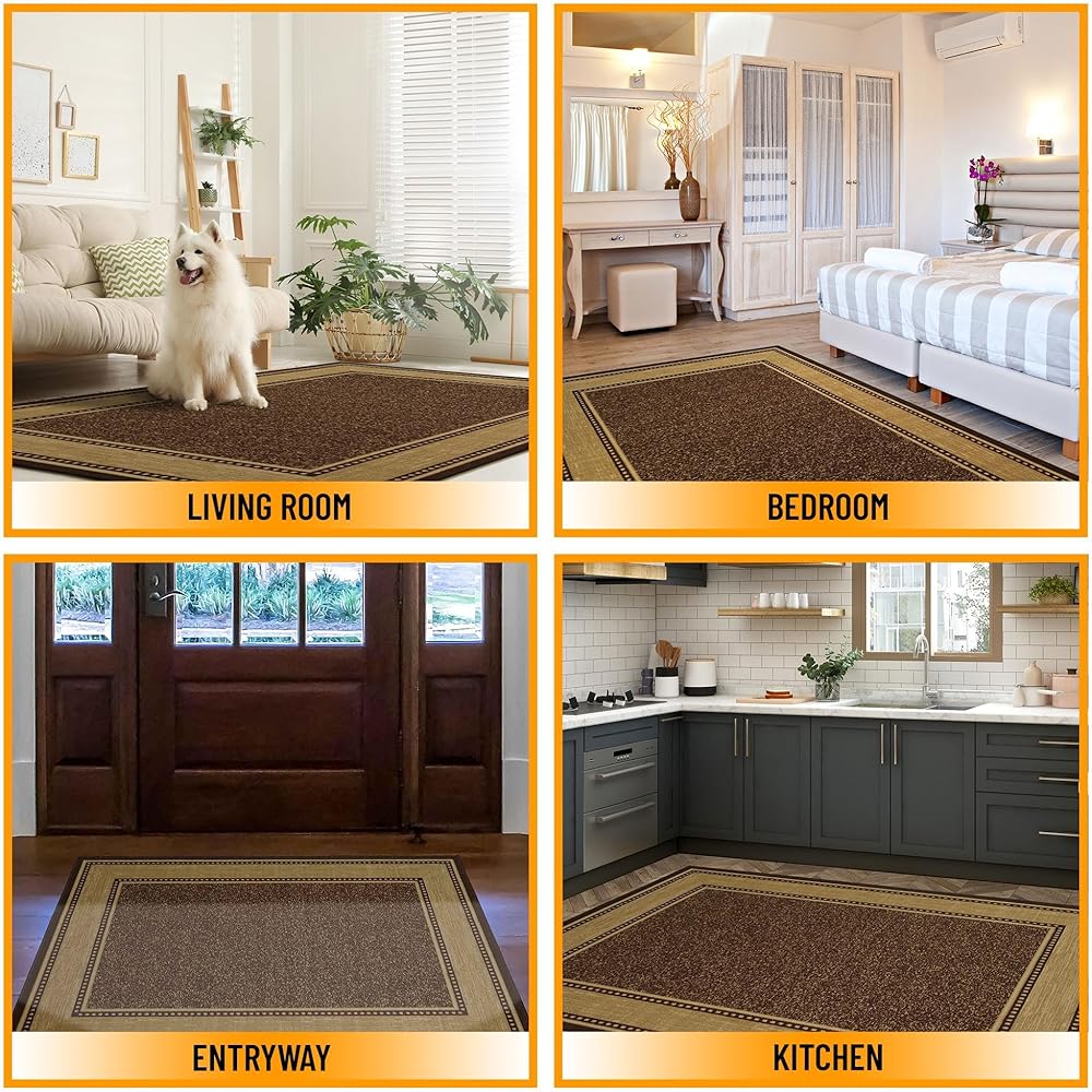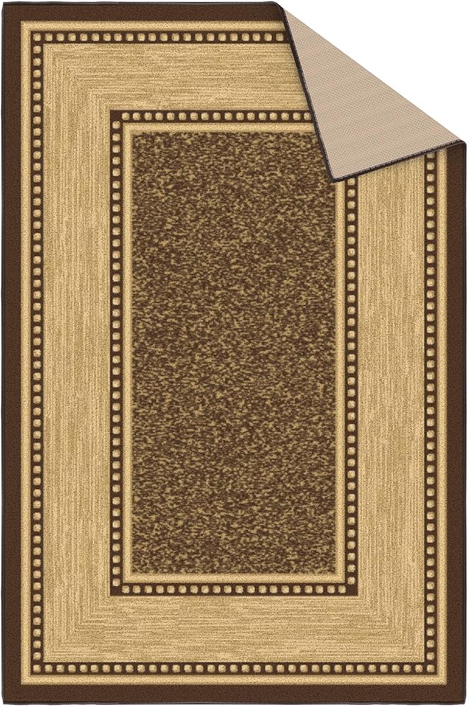 Ottomanson 3'3" x 5' Rugs for Living Room Border Area Rug for Bedroom - Non Slip Durable Large Floor Carpet for High Traffic Areas - Indoor Rug for Dining Room Kitchen Kids Playroom, Brown