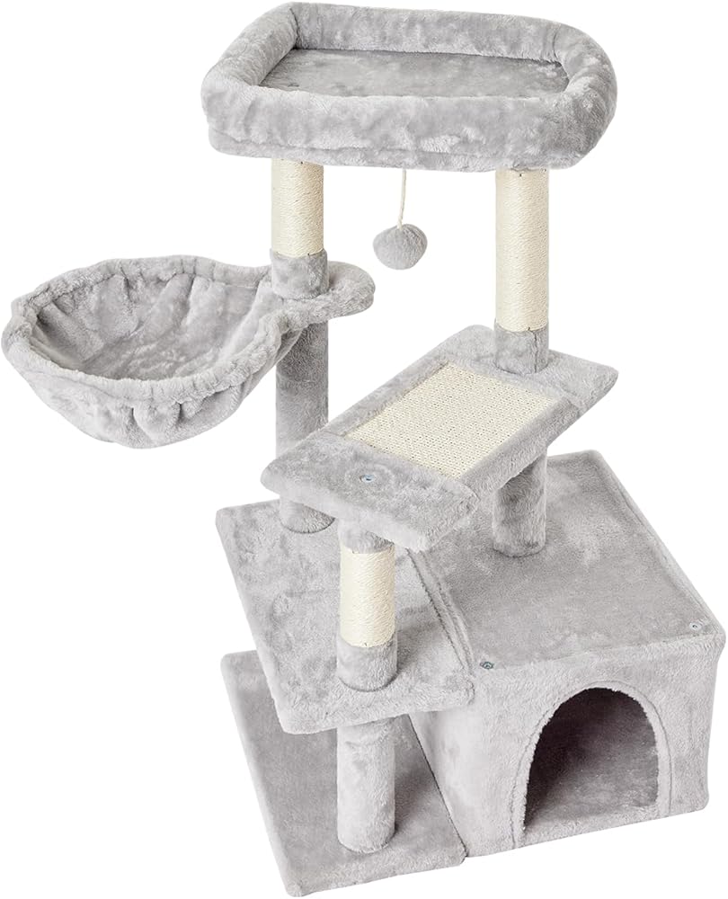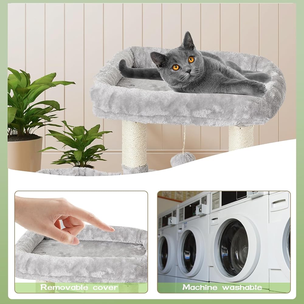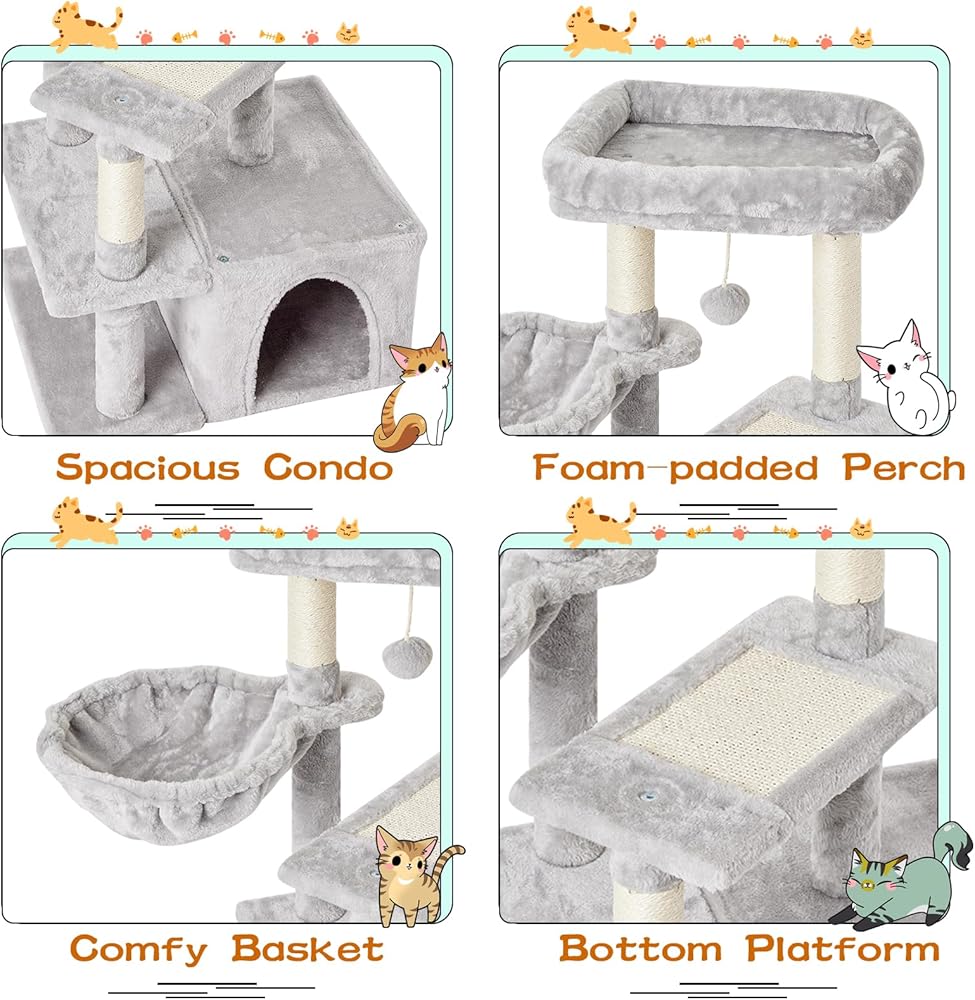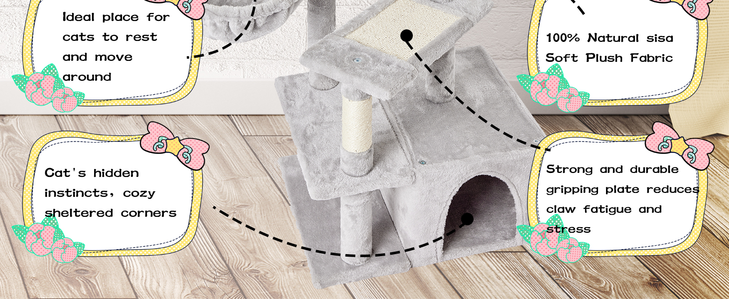 COMFORTABLE AND SOFT MATERIAL:natural sisal sctraching post for cat scratching ,standard safe board,High quality faux fur is soft and comfortable ,it is solid structure。