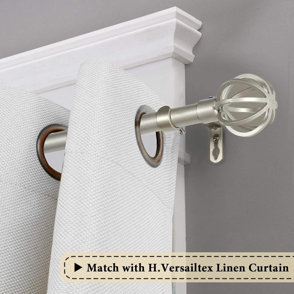 H.VERSAILTEX Window Curtain Rods for Windows 28 to 48 Inches Adjustable Decorative 3/4 Inch Diameter Standard Single Window Curtain Rod Set with Round Cage Finials, Bronze
