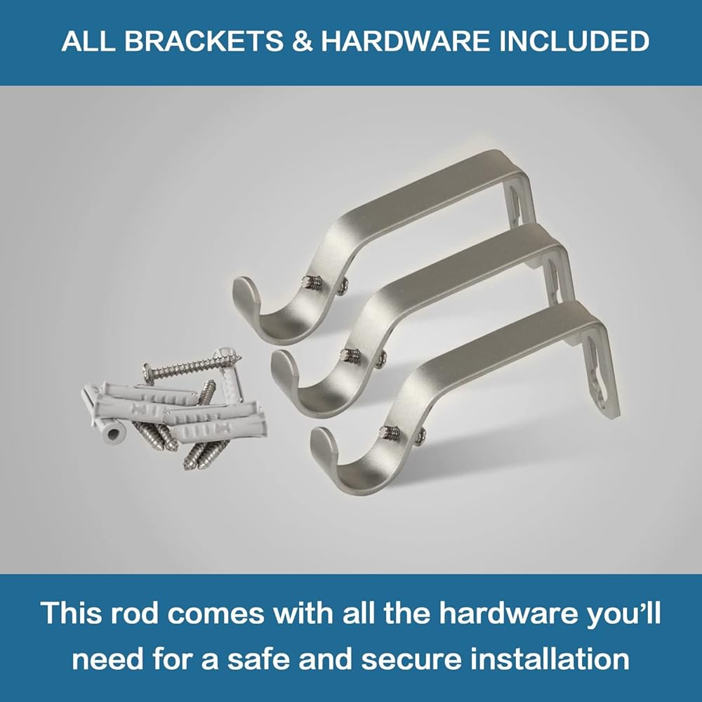 ENTIRE SET: Installation instructions included, well package with 1 set of high quality of steel single window curtain rod, 2 metal finials, 3 durable mounting brackets, and other hardware