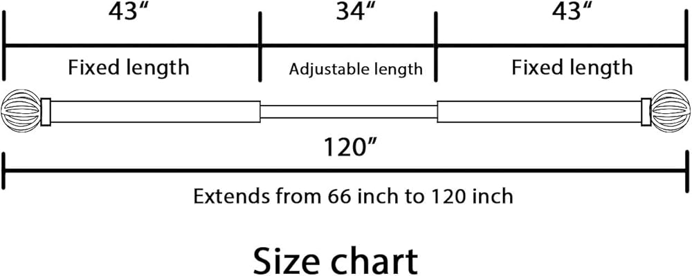ADJUSTABLE LENGTH: 3/4-Inch Diameter Decorative Curtain Rod adjusts from 66 to 120 Inches