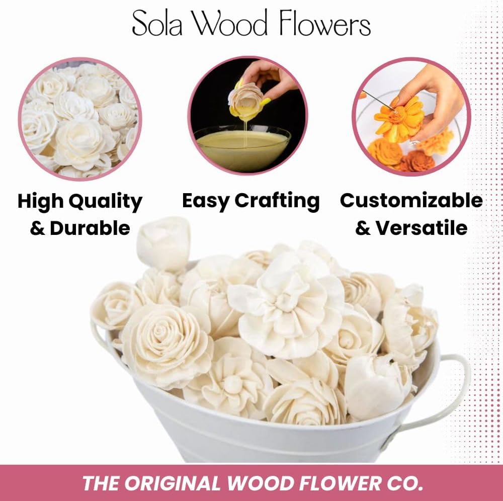 Featuring different types of sola wood flowers in sizes ranging from 1 inch to 1.5 inches