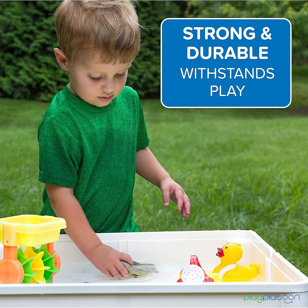 PERFECT GIFT FOR KIDS: Entertain your kids for hours with the Play Platoon toddler table and chair set, an amazingly fun activity table for toddlers 1-3. It provides wonderful fun as a water table, a Lego compatible building brick table,a drawing and crafts art table, a sensory table for playing with sand, rice, slime, and storage unit.