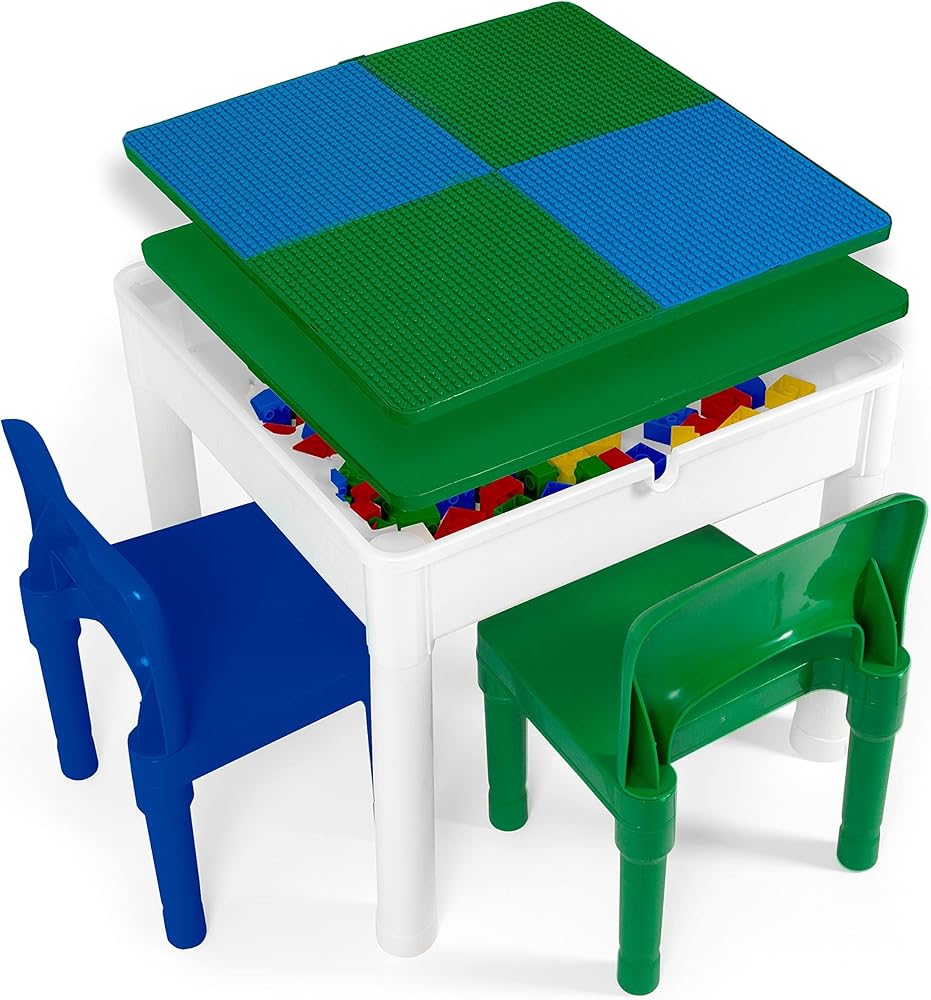 INCLUDES 2 CHAIRS & 25 X-LARGE BLOCKS: This set is also a great activity table for kids ages 4-8 too. includes 2 chairs, a table, and 25 x-large blocks for instant fun for your kids. It is compatible with Legos, Mega Bloks, and Duplo bricks, ensuring a guaranteed tight fit!