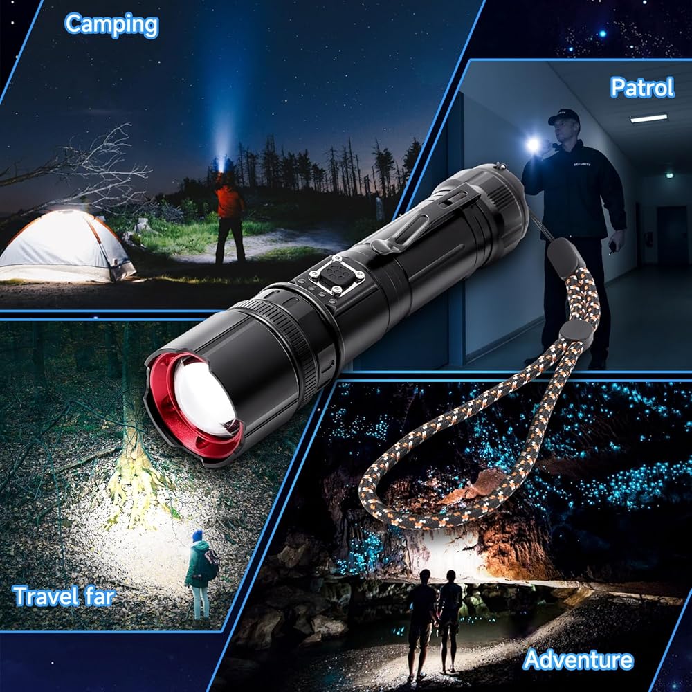 【متين ومقاوم للماء】يتميز مصباحنا اليدوي المقاوم للماء بتقنية إغلاق متقدمة ليظل مقاومًا للماء حتى تتمكن من مقاومة المطر والعواصف وأي ظروف جوية صعبة. هذا المصباح اليدوي عالي الطاقة مصنوع من سبائك الألومنيوم الخاصة بالطائرات وقد تم اختباره بدقة لتحمل السقوط العرضي حتى 36 قدمًا والتعامل القاسي. مثالية للجري في الهواء الطلق والتخييم وصيد الأسماك والمشي لمسافات طويلة والاستكشاف.