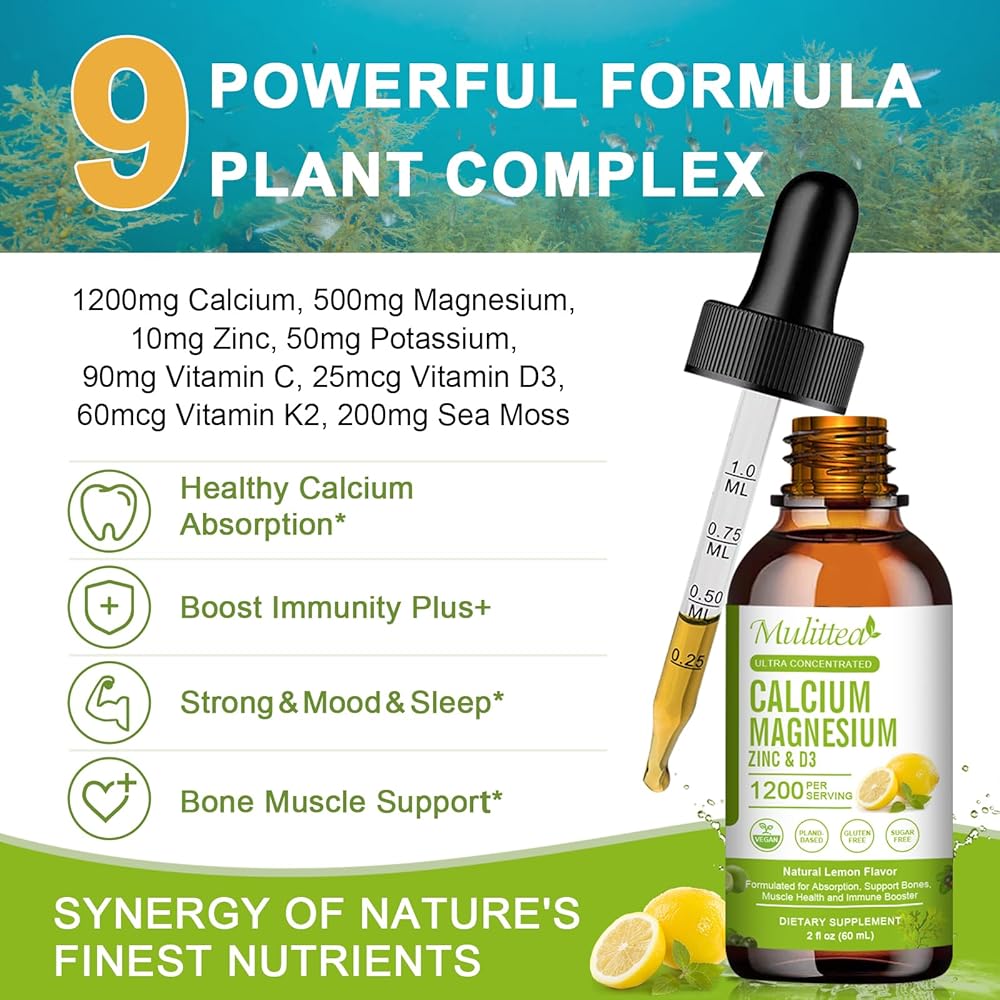 ✔️ WELL-ROUNDED, ESSENTIAL DAILY SUPPORT: Mulittea delicious calcium magnesium zinc Liquid is an easy-to-take liquid vitamin for women, men, and children. Receive the benefits of these minerals vitamins, superfood, and other nutrients for immune support, help manage well-rounded*