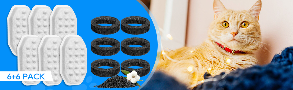 💦Set of 6 individually sealed packages of cat water fountain filters (includes Pet Fountain Filter & Sponge Filter).