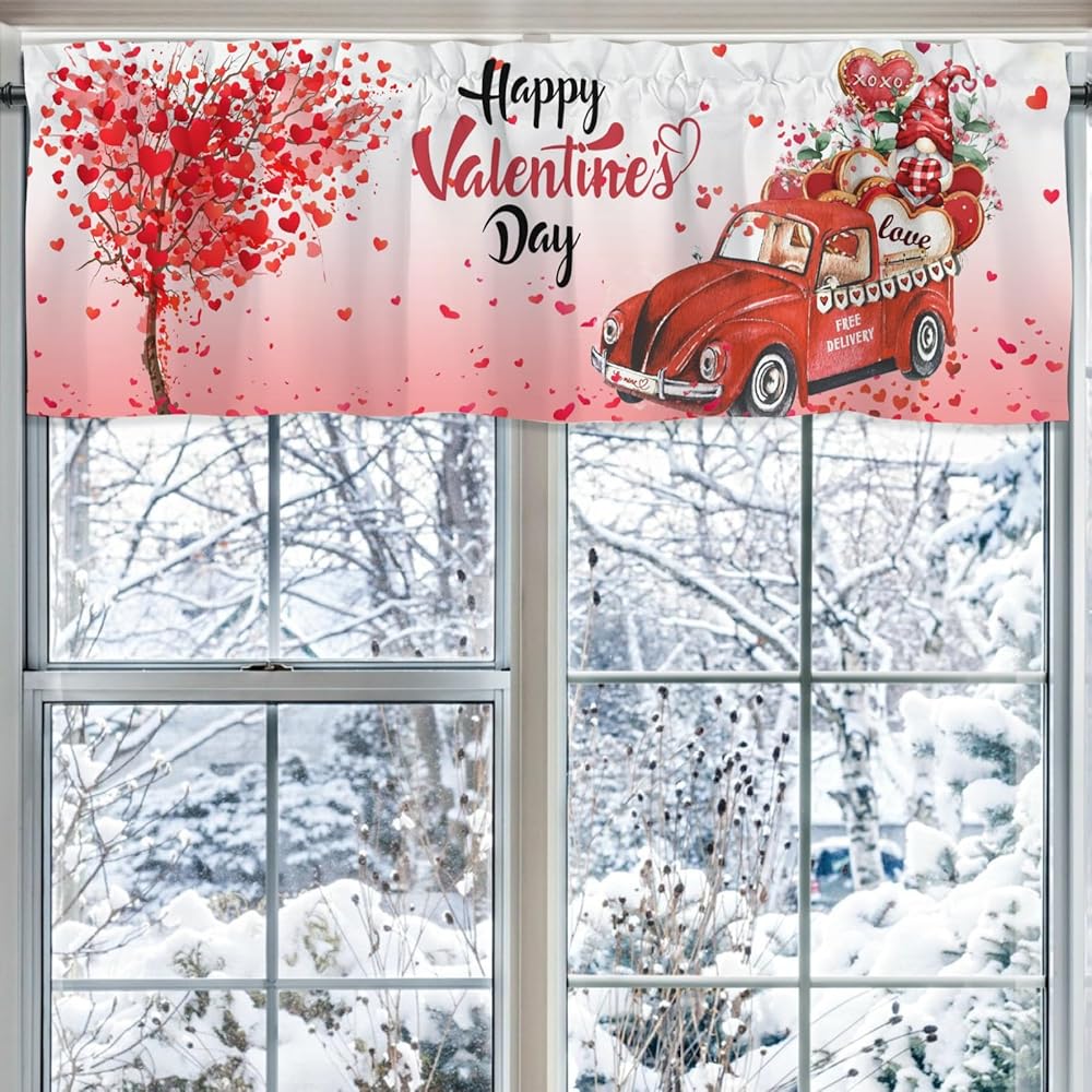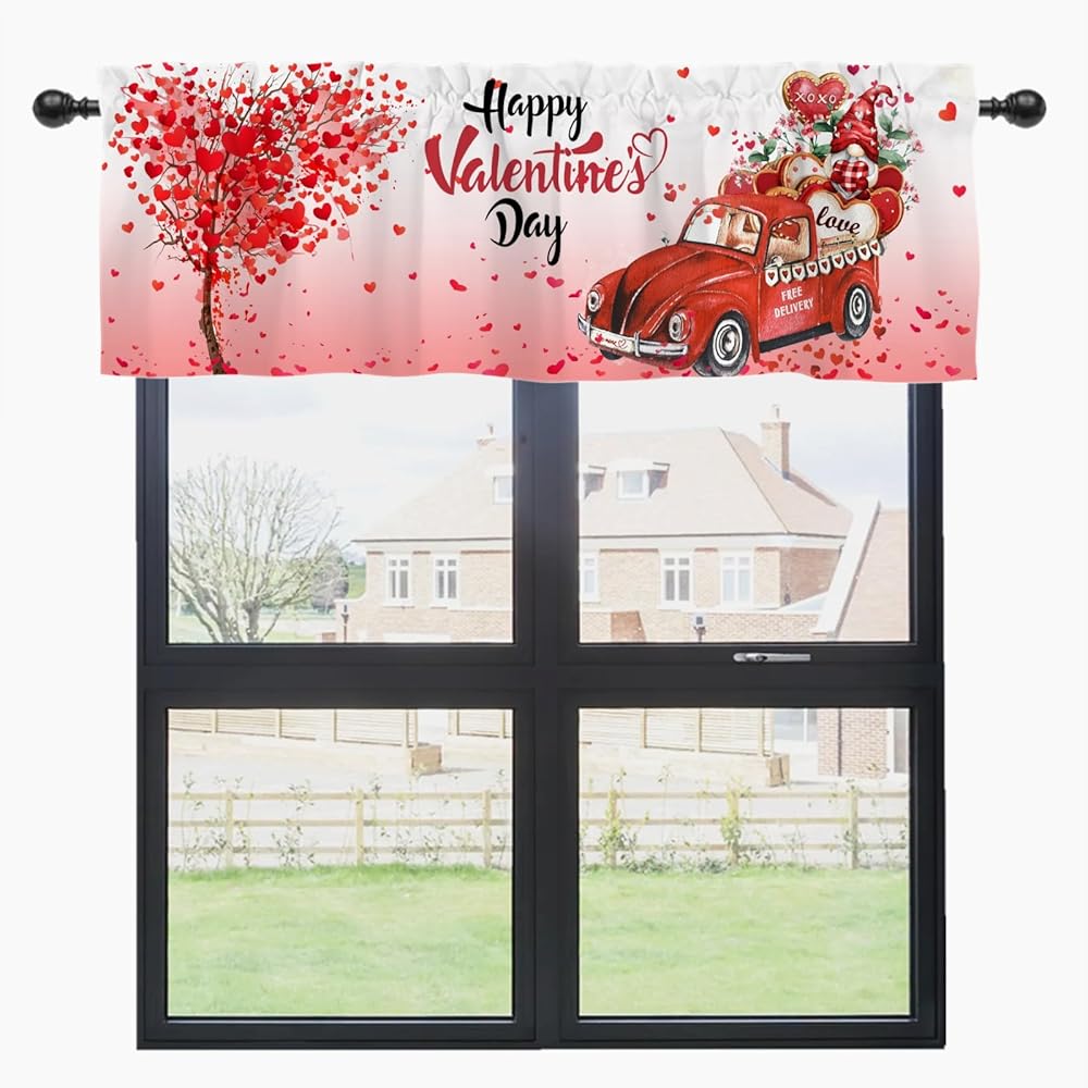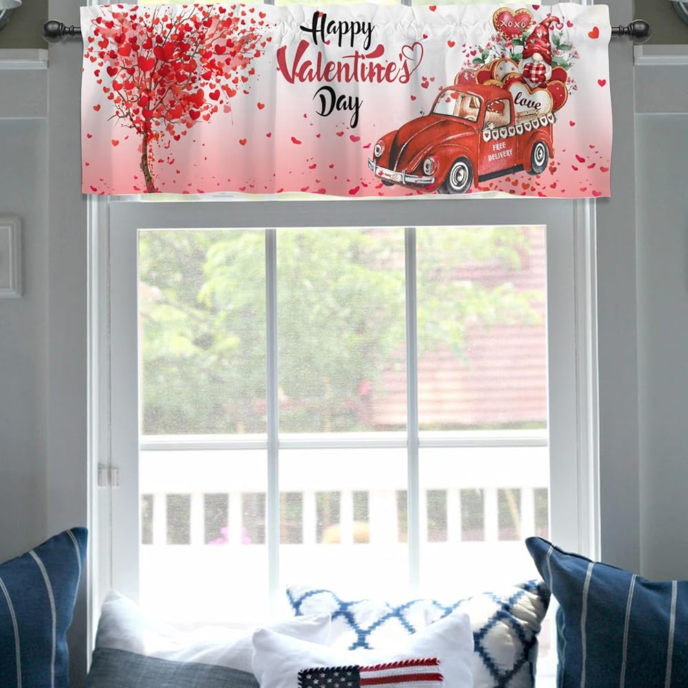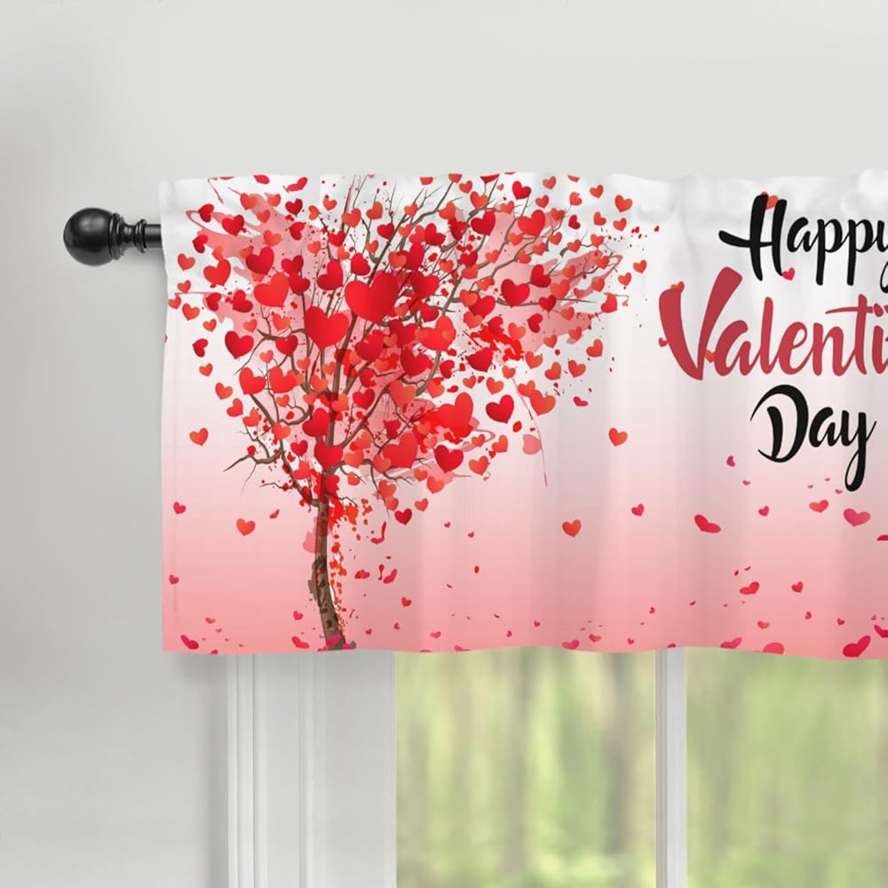 Kitchen Window Curtain: Measures 54 x 18 Inches (137 x 45cm) for 1panel. Our Happy valentine's day funny golden retriever ‘be mine i woof you I'm yours no returns' sign valentines love letter 'I woof you I'm yours no return' valentine heart tree branches balloon valance curtains with rod pocket on top, fit well with standard or decorative curtain rods. Our kitchen half window curtains are made of durable polyester fabric with classic colorful patterns, these valances are light filtering and allow a bit of light to still come through