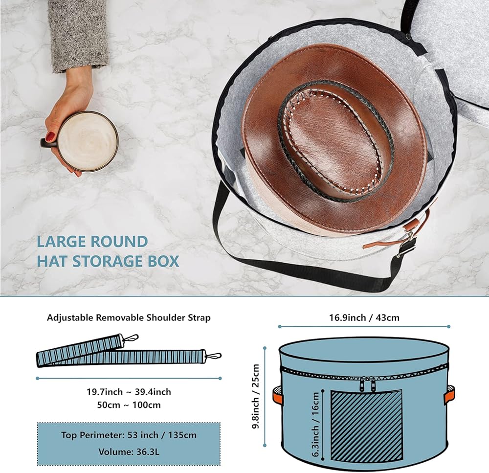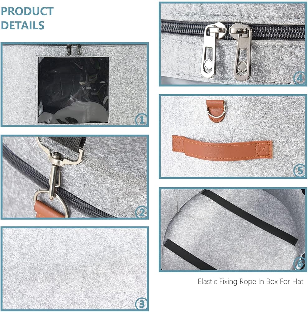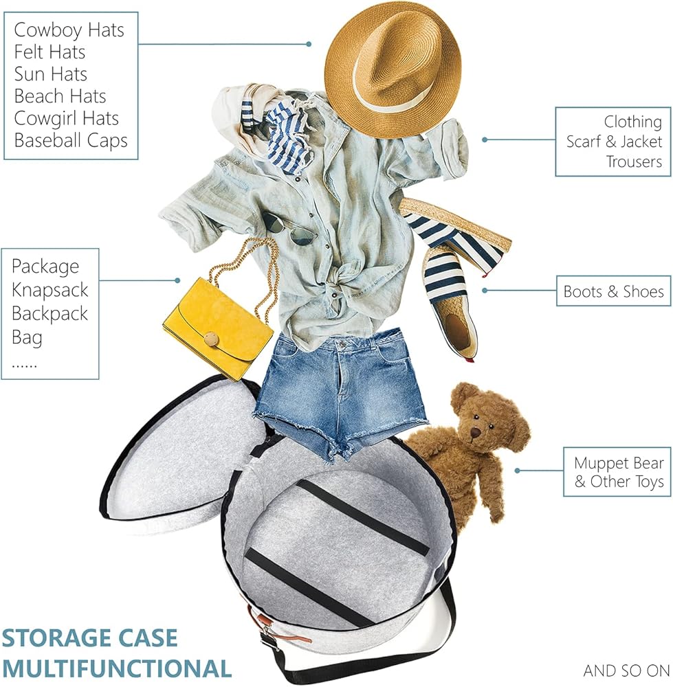 🎩Material: Our big hat box storage is made of high quality felt fabric, leather handle, durable, long life, good abrasion resistance, not easy to be damaged by hat tip or hard objects. And can be folded freely, can be washed, dry cleaned, very easy to use.