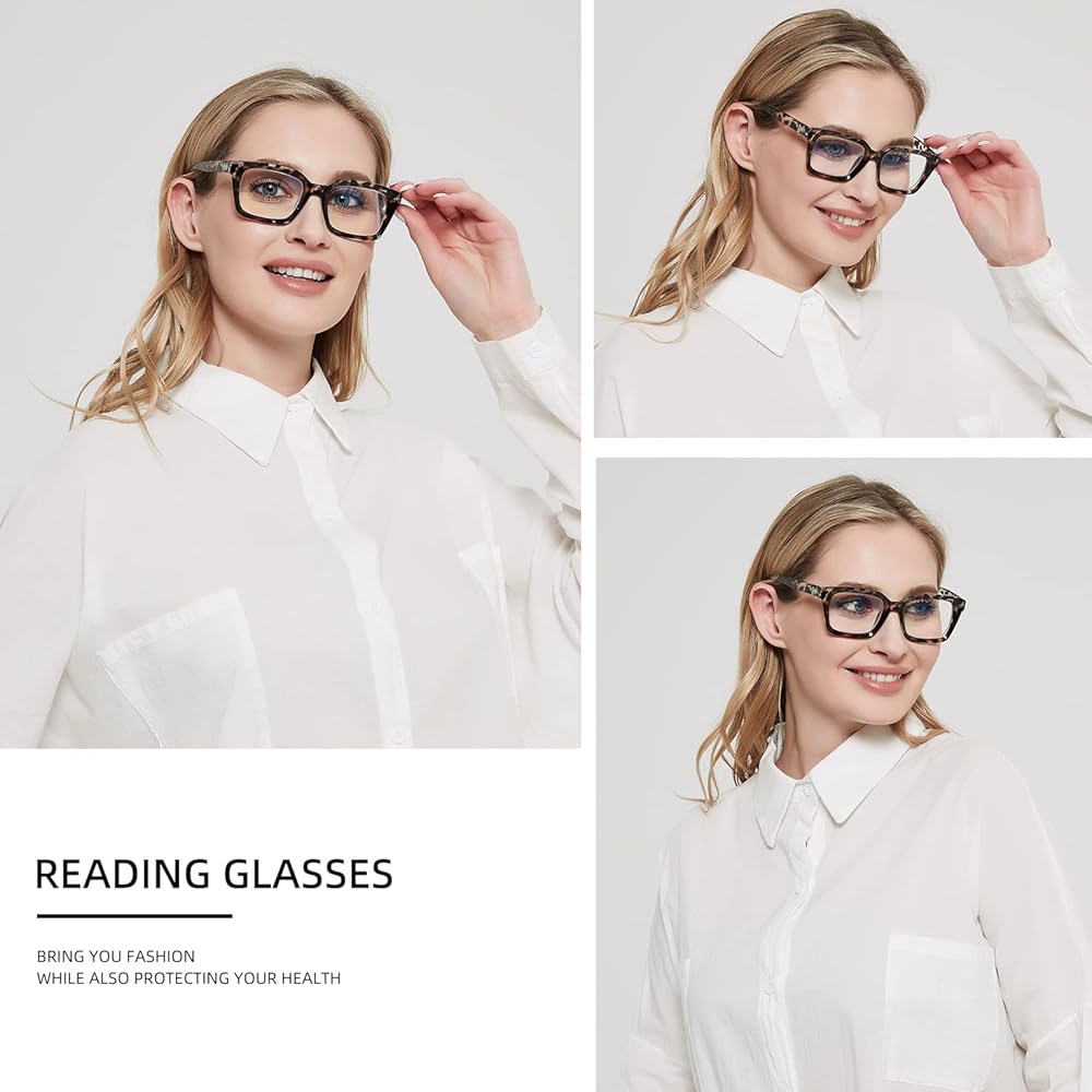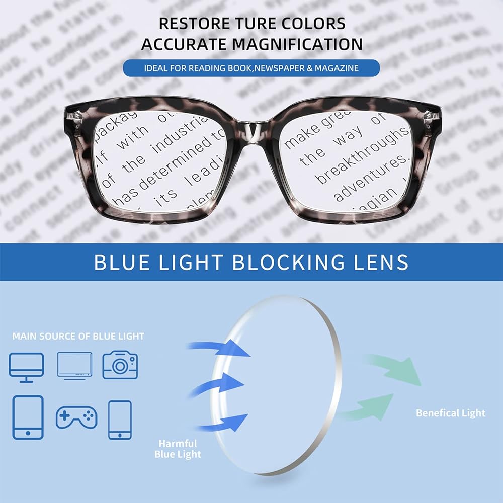 Houocon Oversized Reading Glasses for Women Men, Retro Square Blue Light Blocking Computer Readers Large Oprah Frame, 2.0x