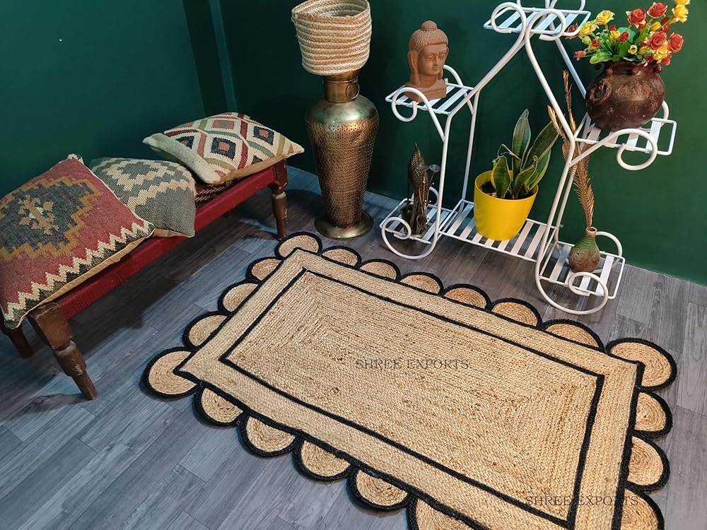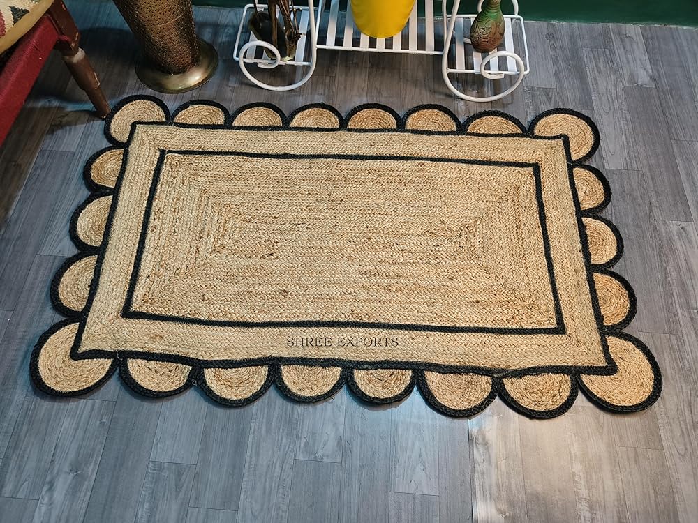 Crafted with love and care, this hand made scalloped pattern rugs carry the spirit of the artisans that made them. Each piece is marked by subtle but individual differences that make your rug unique The perfect combination of style and durability, our jute rugs bring home effortless sophistication and are perfect for your living room, dining room, kitchen, or hallway A braided texture creates the perfect casual, coastal, farmhouse, or global look and feel A solid neutral color ensures this rug can be seamlessly integrated into existing décor Handmade rugs should be treated more carefully than machine-made rugs. We recommend shaking off any dirt or debris rather than vacuuming