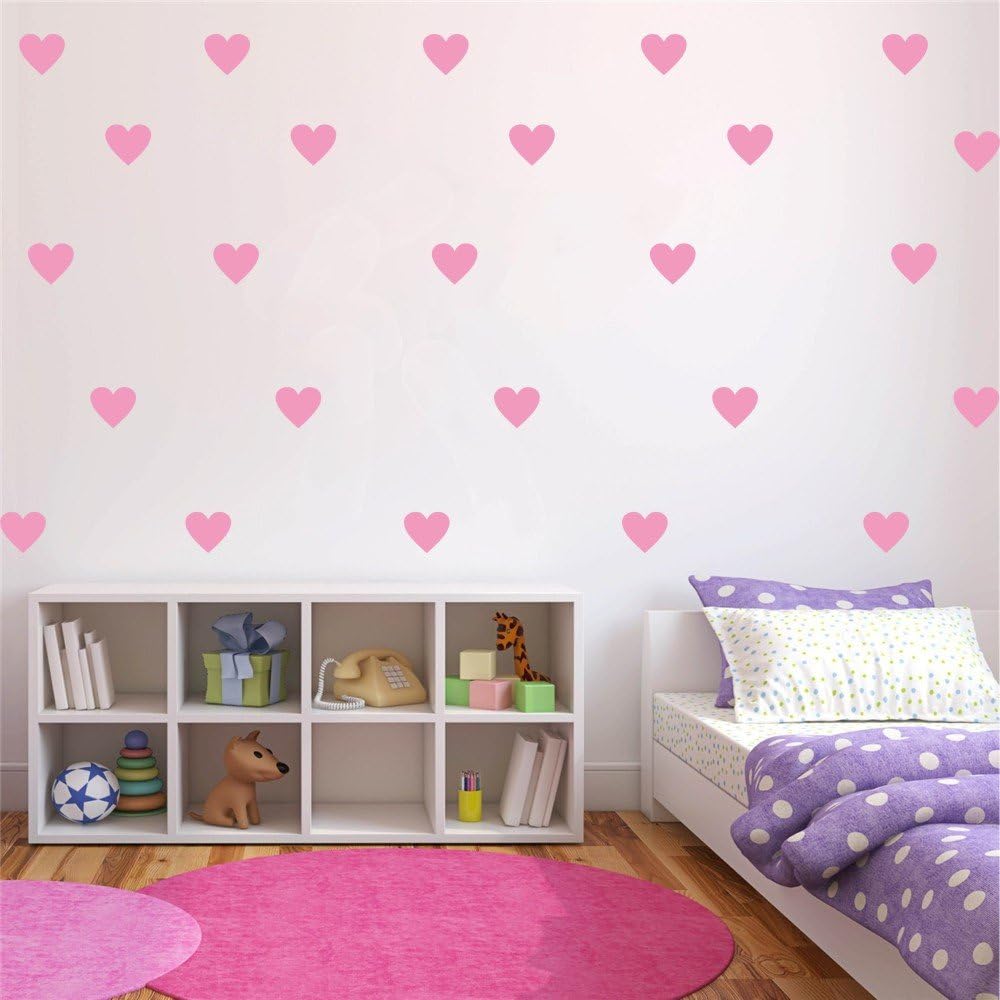 96pcs Heart Wall Decals – 2-Inch Removable Vinyl Stickers for Nursery, Kids Bedroom, Baby Girl or Boy Room, Toddler Playroom – DIY Pastel Color Decor for Wall, Door, or Furniture (Soft Pink)