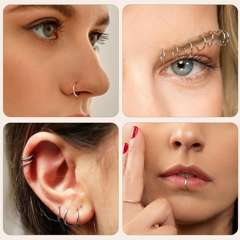 Hoop rings for women & men: Surgical Steel,Lead-free and Nickel-free, Don't worry about allergies without sharp edges.