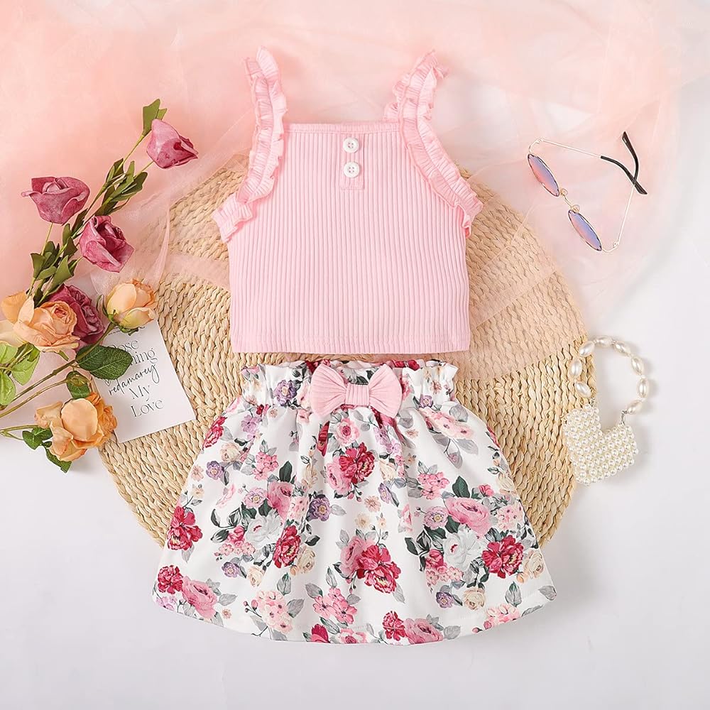 Package includes 1pc baby girl tank top + 1pc baby girl shorts/Short skirt,your cute baby will love it very much,buy it.