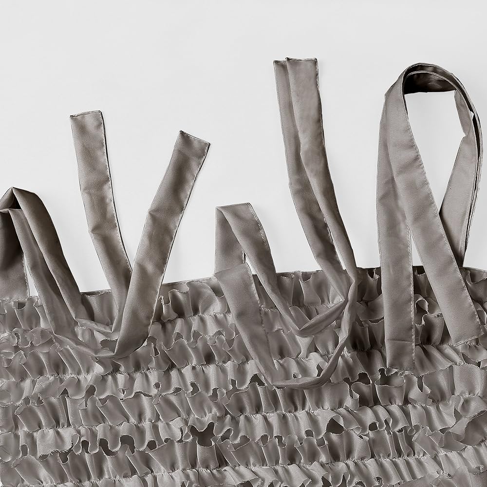 Delicate, elegant window curtain panels made of a soft, 100% polyester fabric with ruffled detail at the top.