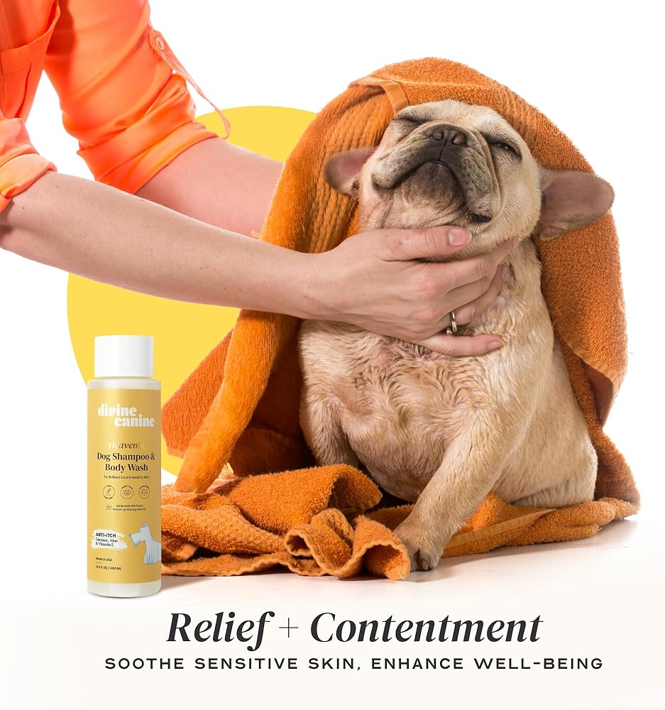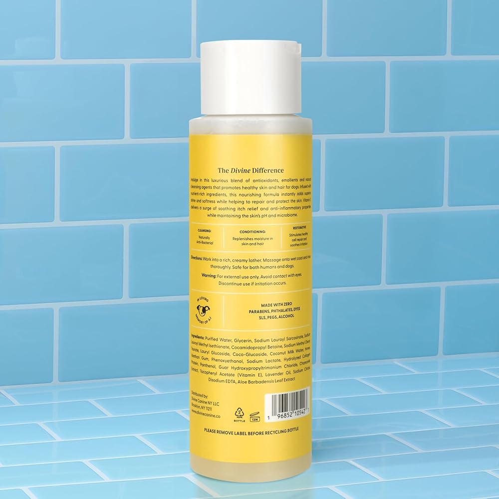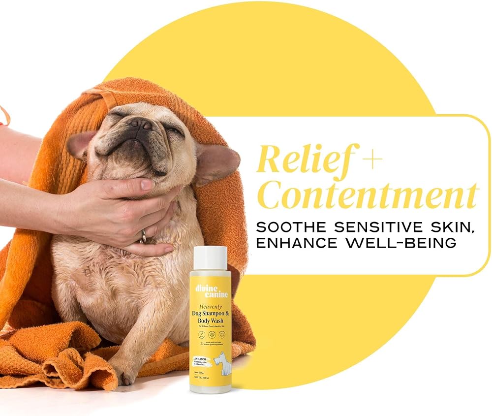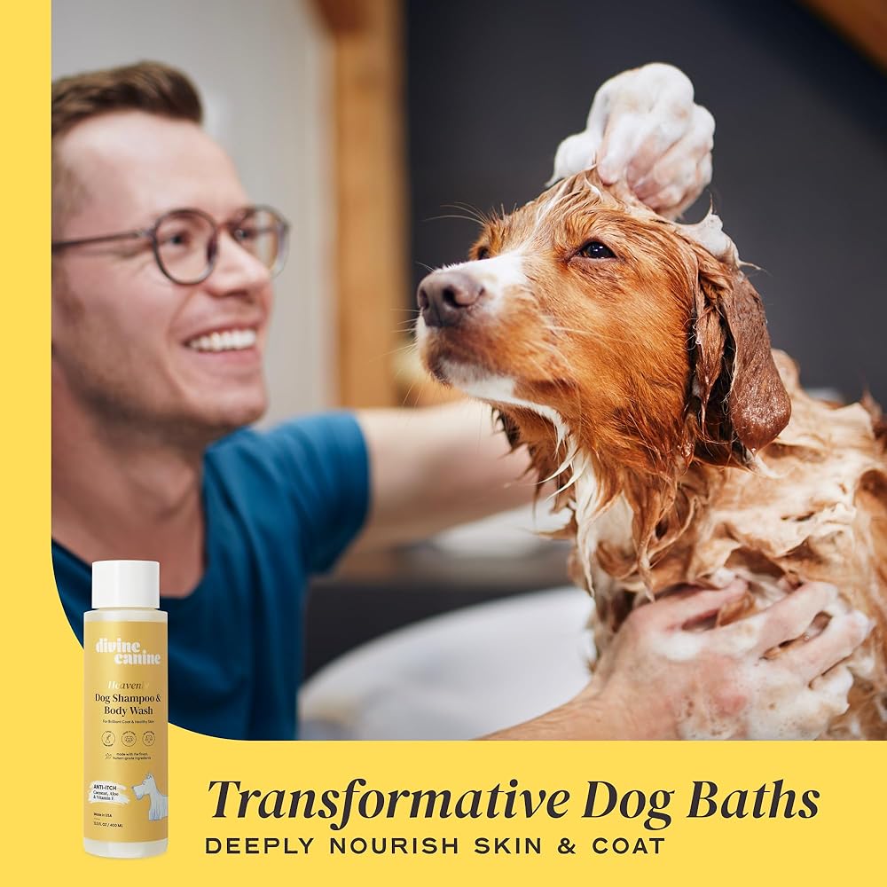 Heavenly Shampoo for Dogs: Crafted with human-grade ingredients, Divine Canine's formulas offer a spa-like treatment for your best friend. Pets and their people appreciate how the pure, wholesome ingredients deeply cleanse and soften for invigorating results. Collagen offers a natural reparative boost to skin and coat while other special elements focus on your dog's unique needs. A perfect balance of luxury, nourishment, and freshness, level up dog baths with our exceptional blends.