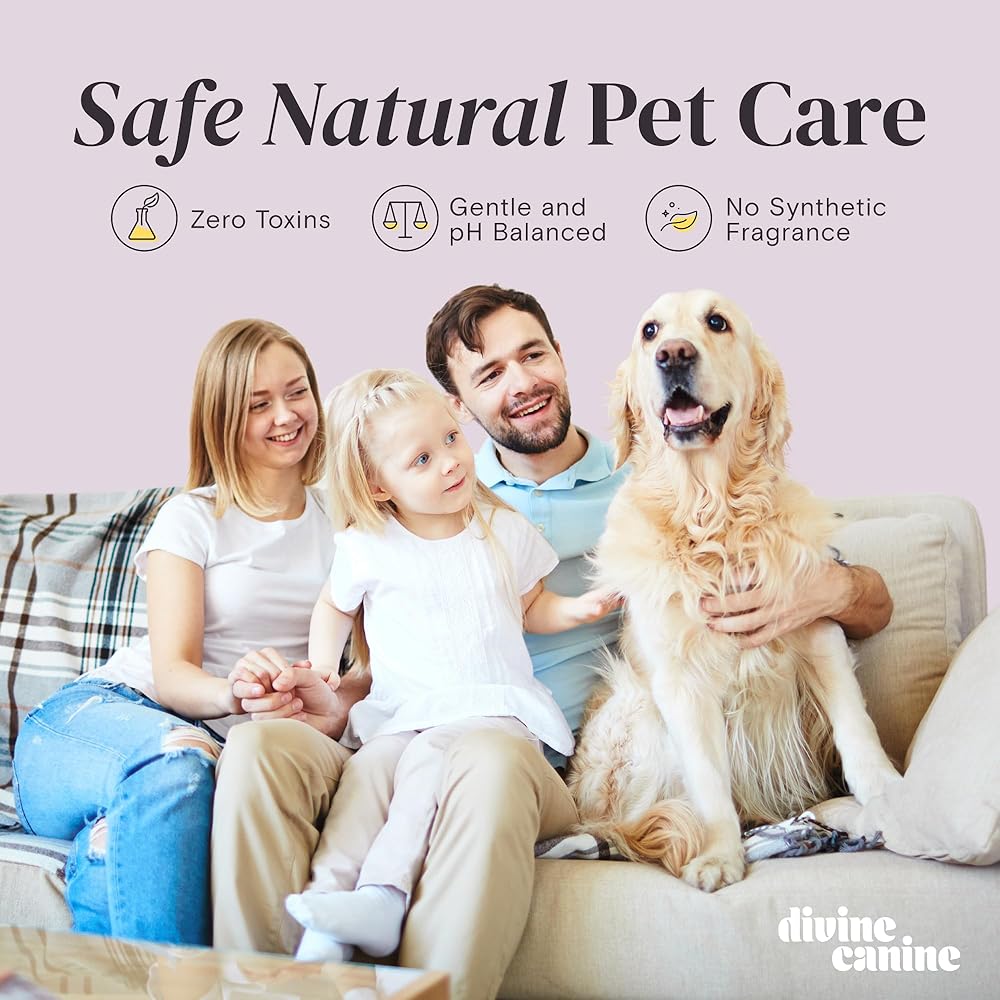 Advanced Pet Care from Divine Canine: We make it our mission to keep your sweet dog not only refreshed & clean but serenely comfortable & happy. Inspired by devotion to her own dog and years of professional experience in upscale hair, beauty, and skin care development—our founder and whole team are delighted to offer your family premium pet grooming formulas that perform beautifully for treasured canine family members.