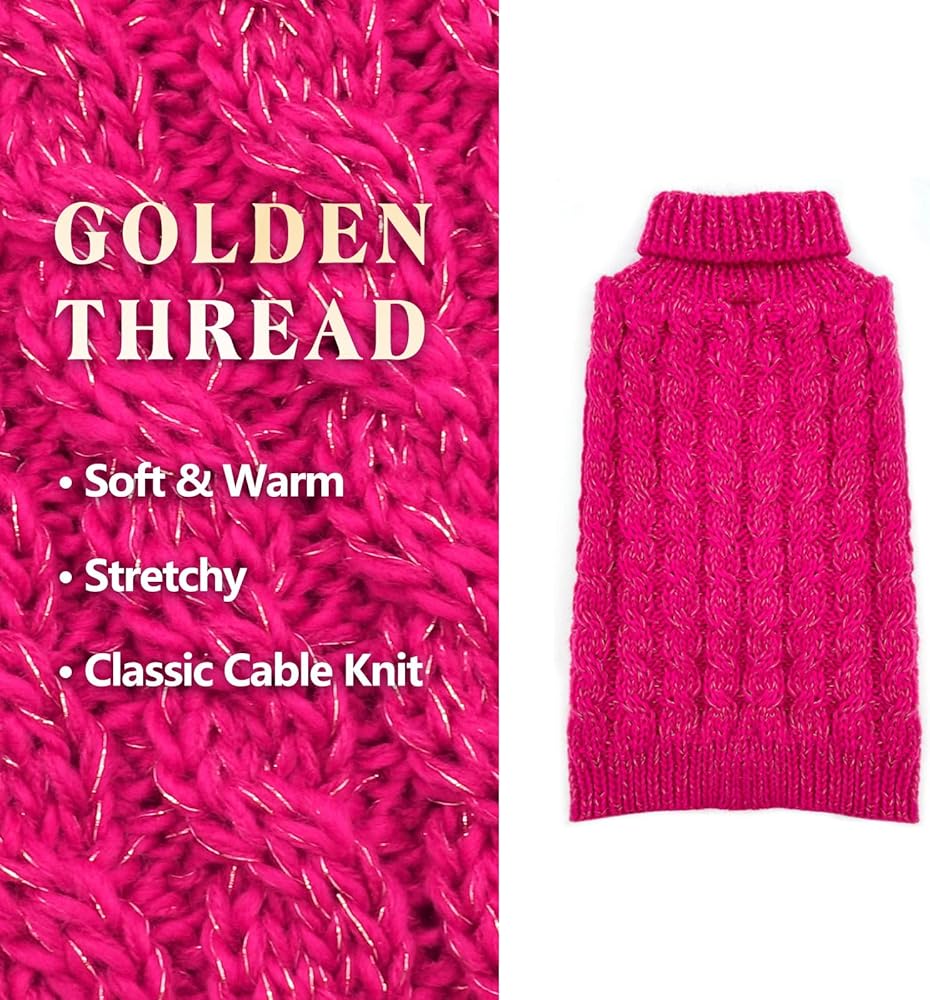 Dog sweater with gold thread through the whole sweater, great for dailywear or holiday.