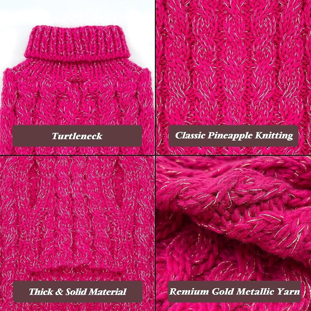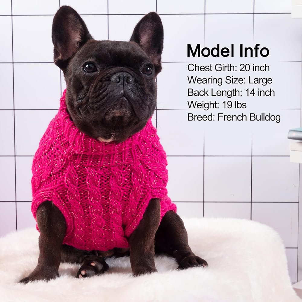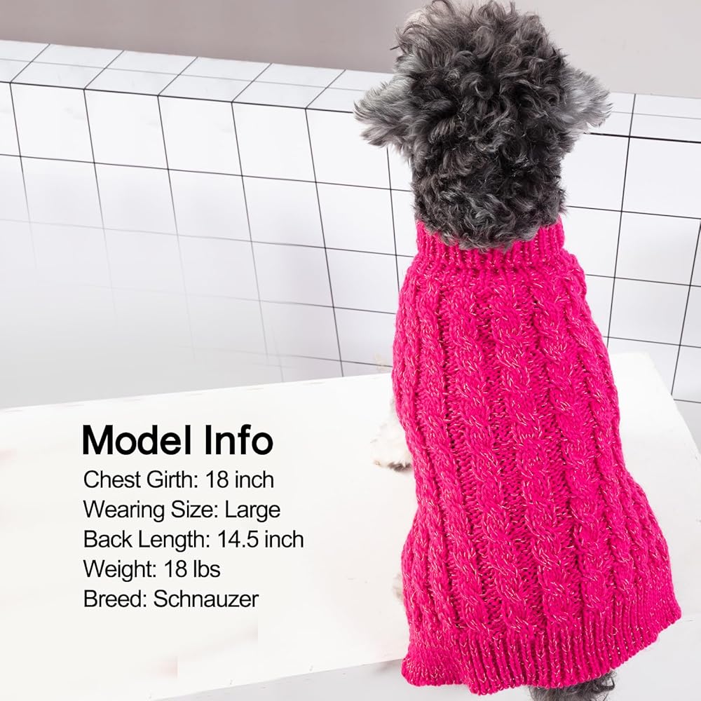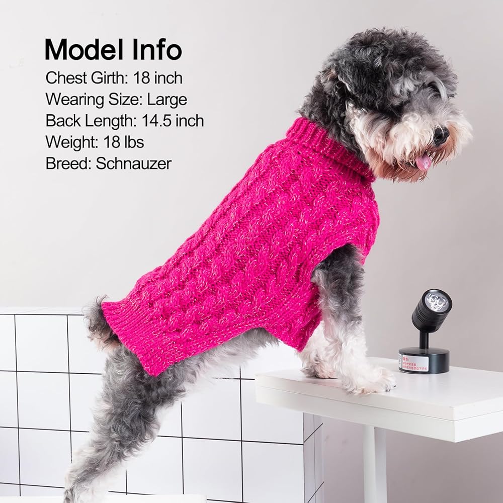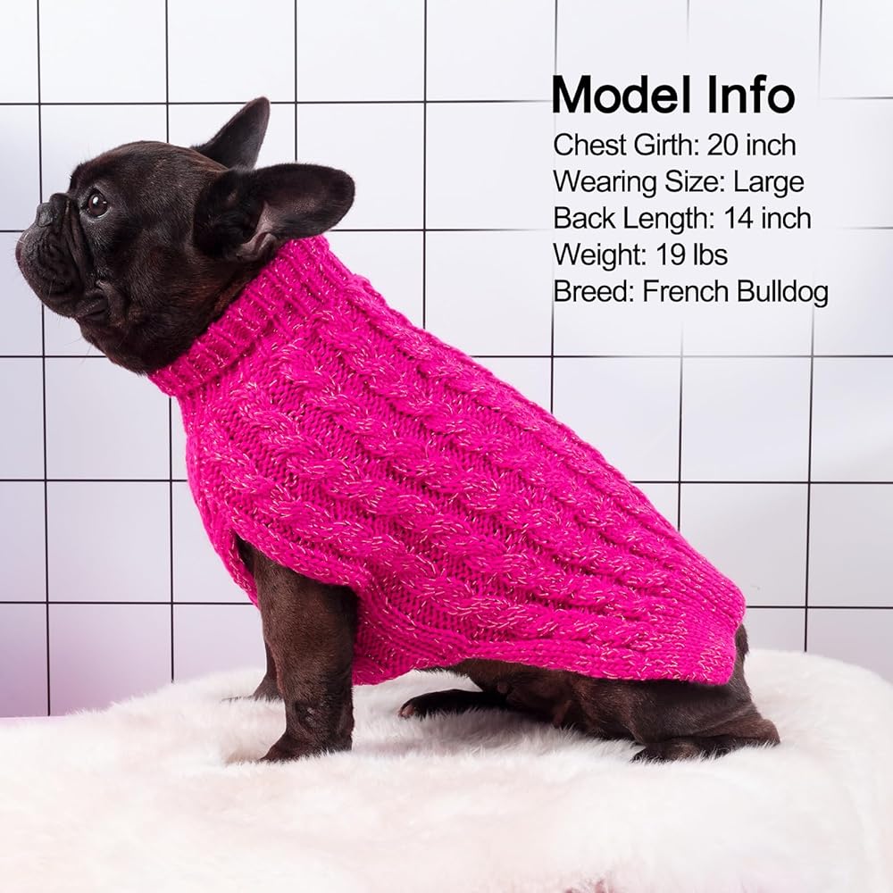 Dog sweater turtleneck is made of acrylic, very stretchable, soft and comfortable fit.