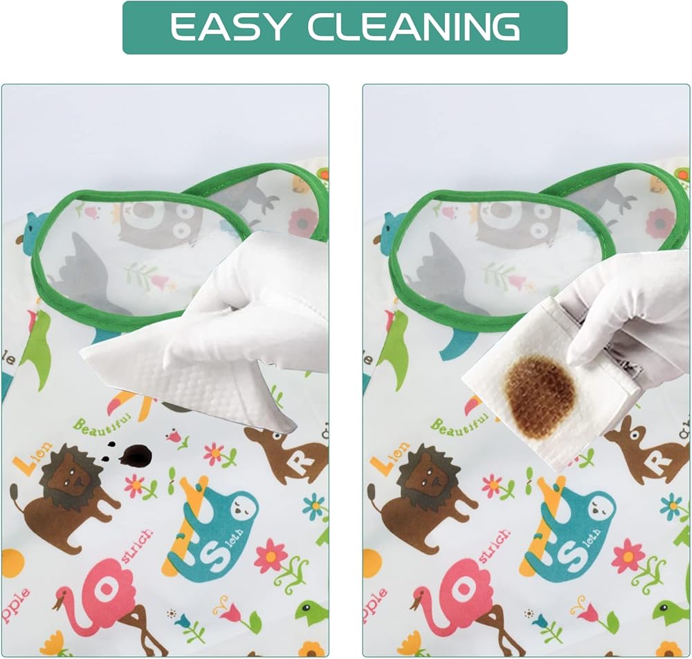 Safe to Use- The baby bib is free from BPA and vinyl,very soft and lightweight.Without a cotton layer, stains and smells don't stick