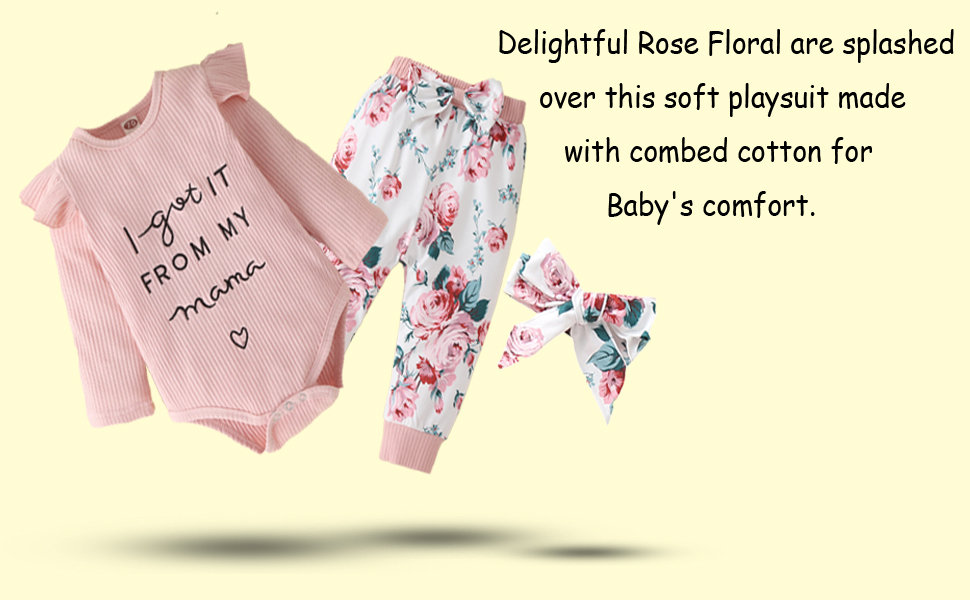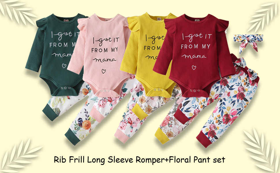 Romper+Floral, leopard Long Pants+Bow-knot Headband. Shoulder flutter-sleeve design. This Pullover Fashion baby clothing set , perfect for gifts or Photoshop