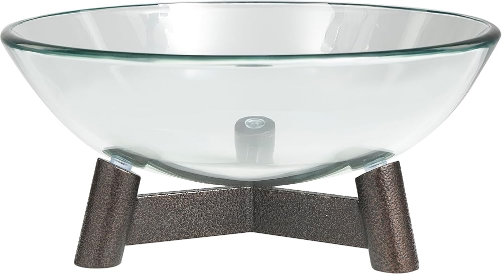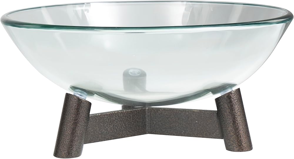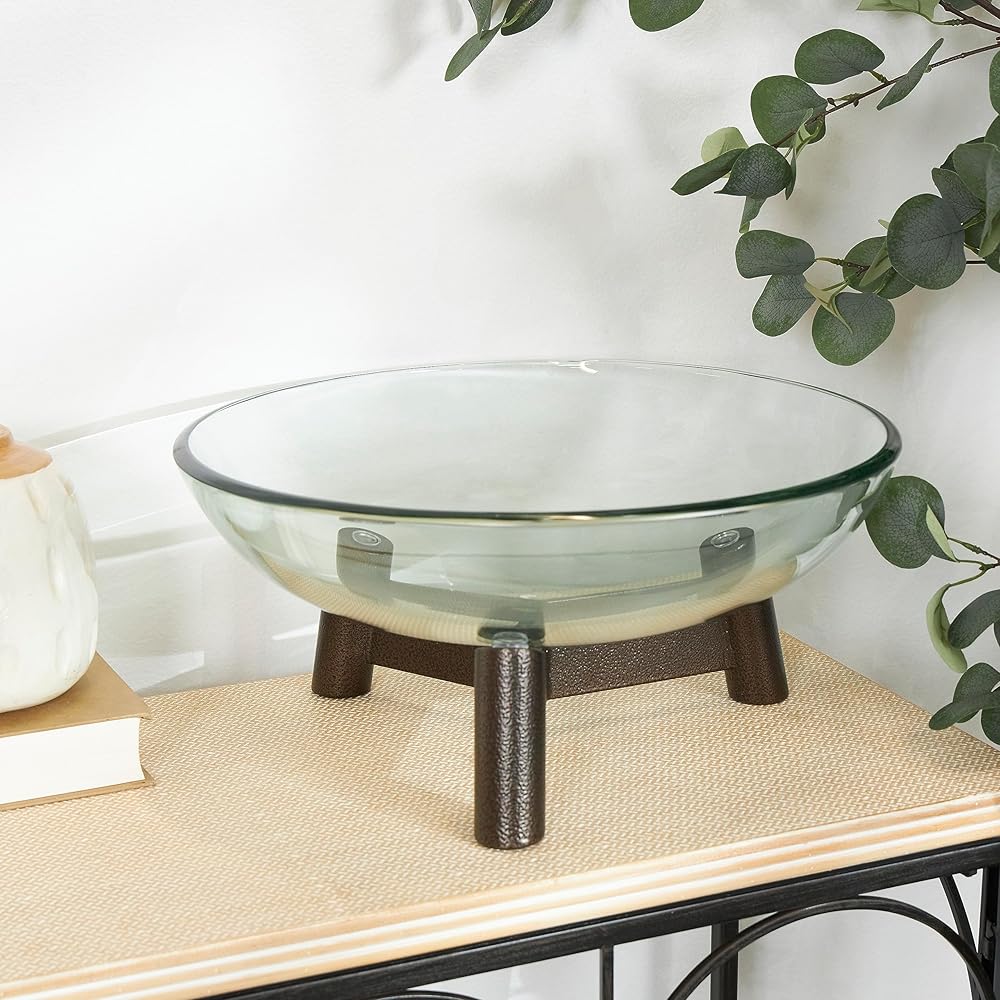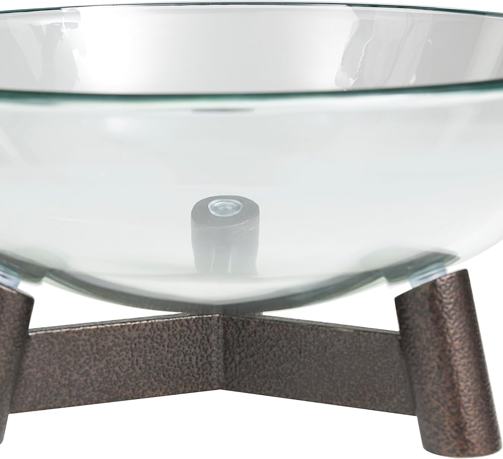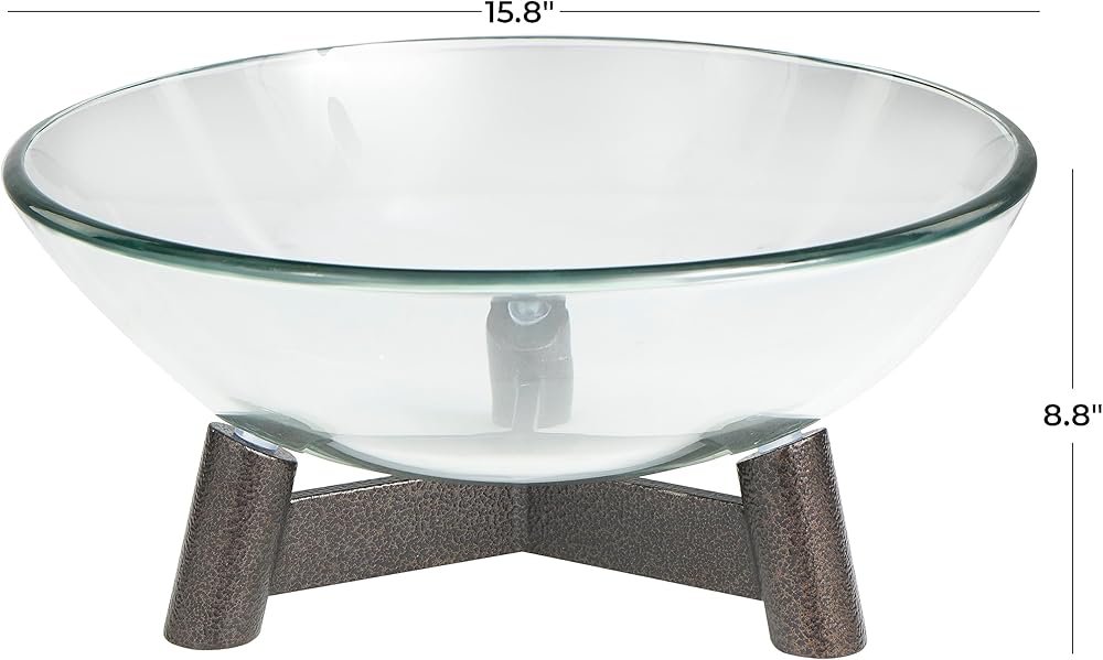 ROUND SERVING BOWL: Our clear glass bowl allows the contents inside to take center stage, while the bronze metal base adds a touch of contrast that makes it a standout piece in any room