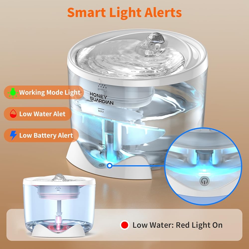 HoneyGuardian Cat Water Fountain,Battery Operated Smart Pet Fountain, Pumpless Cat Water Dispenser, 2.5L/84oz Automatic Water Dispenser for Drinking,5G WiFi