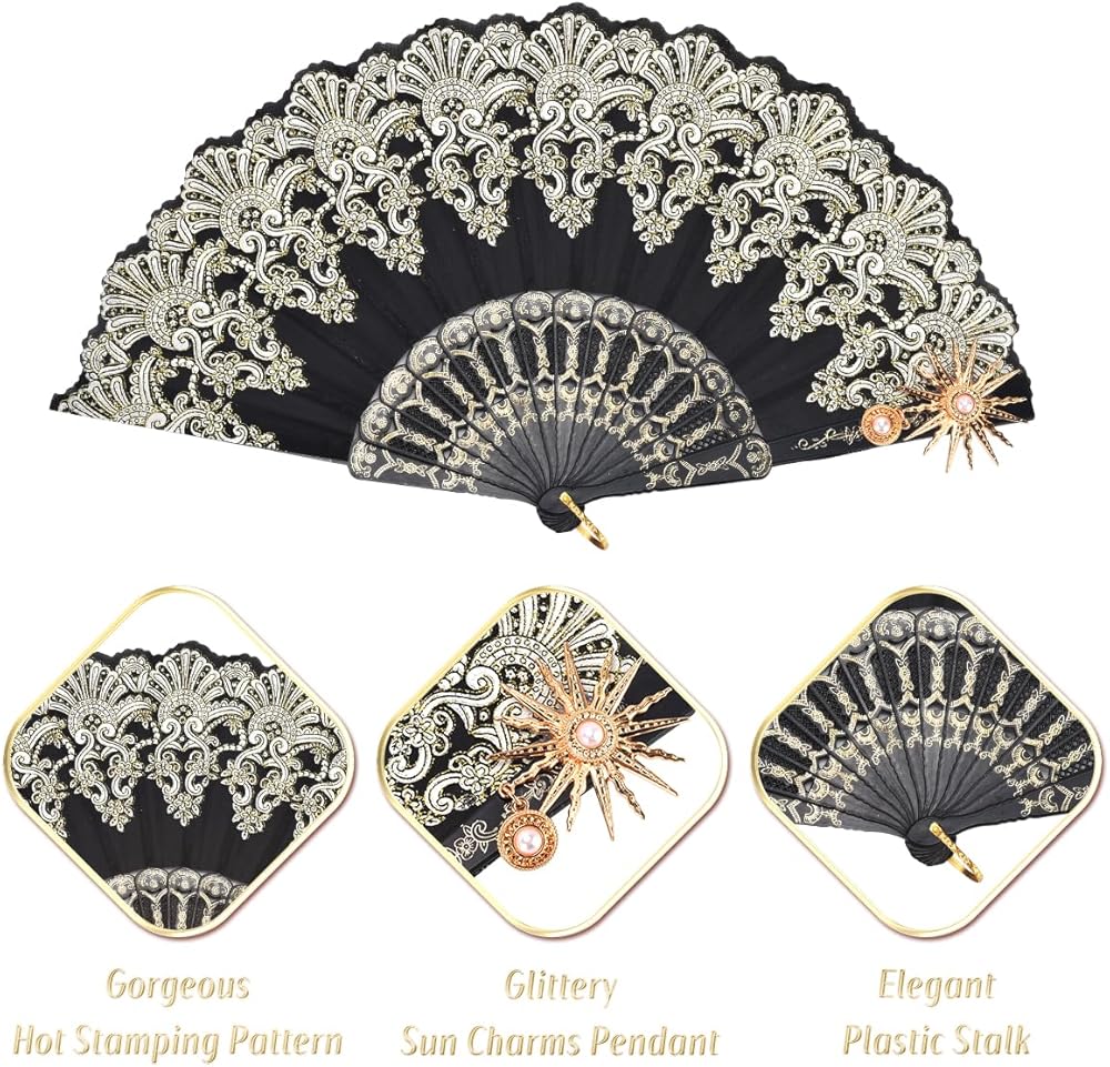 Spanish Folding Fan Vintage Lace Women Handheld Fan for Dancing,Party,Festival and Gift (Black)