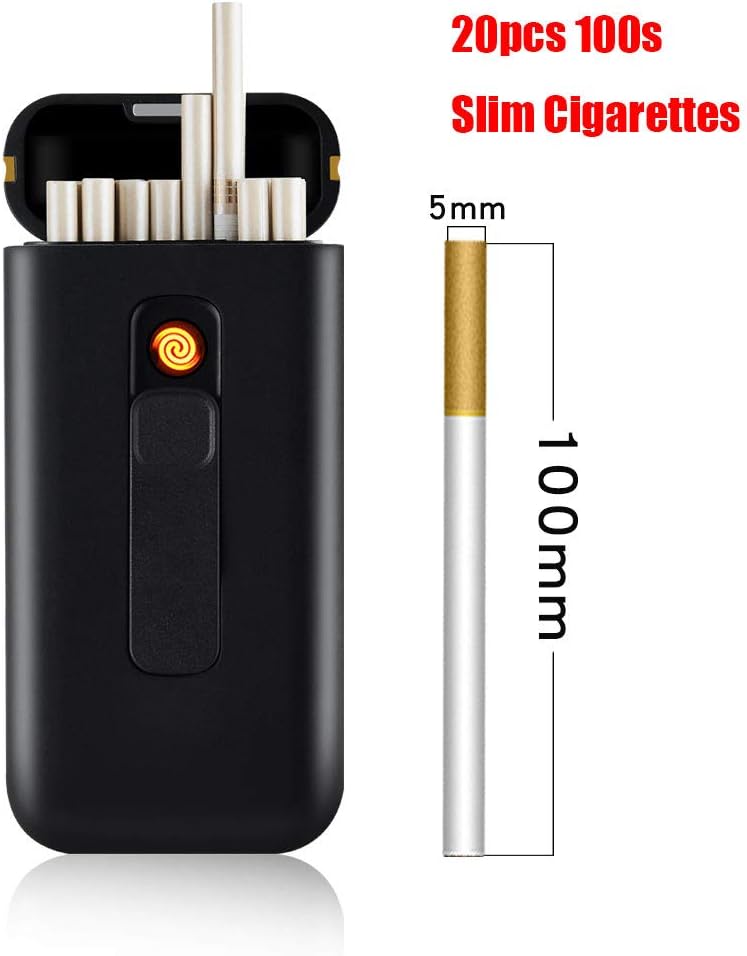 Cigarette Case with Lighter Cigarettes Box King Size Portable Pack 20pcs Regular Size Cigarettes USB Lighters 2 in 1 Rechargeable Flameless Windproof Electric Lighter(Black)