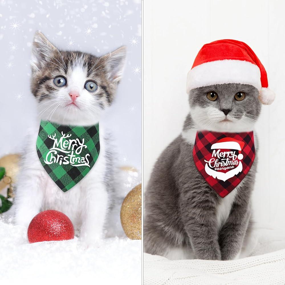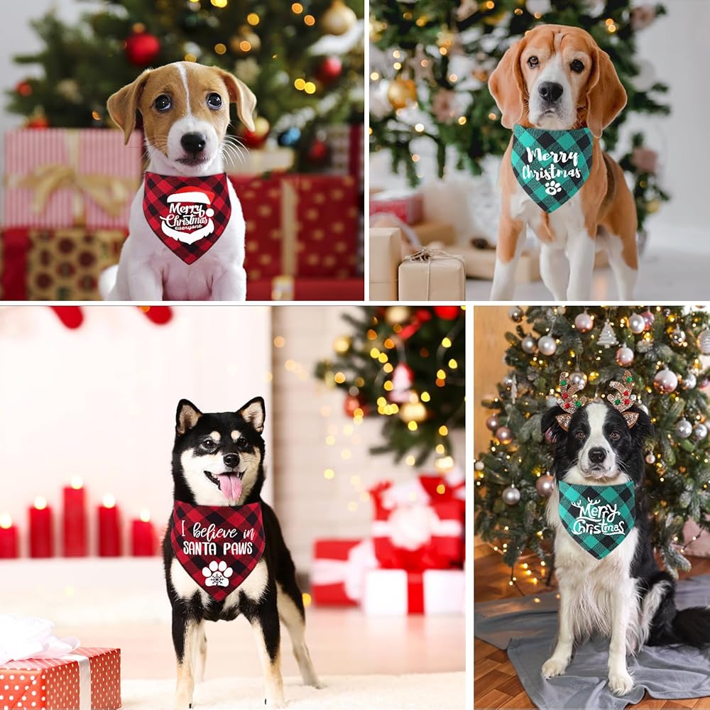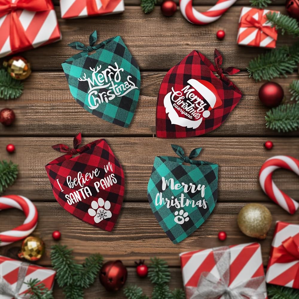 4 عبوات من عصابات الكلاب منقوشة على شكل عصابات عيد الميلاد وعيد الميلاد وعطلة الحيوانات الأليفة ووشاح مرايل للكلاب ومجموعة هدايا منديل لتزيين الملابس للجرو الصغير والمتوسط والقطط