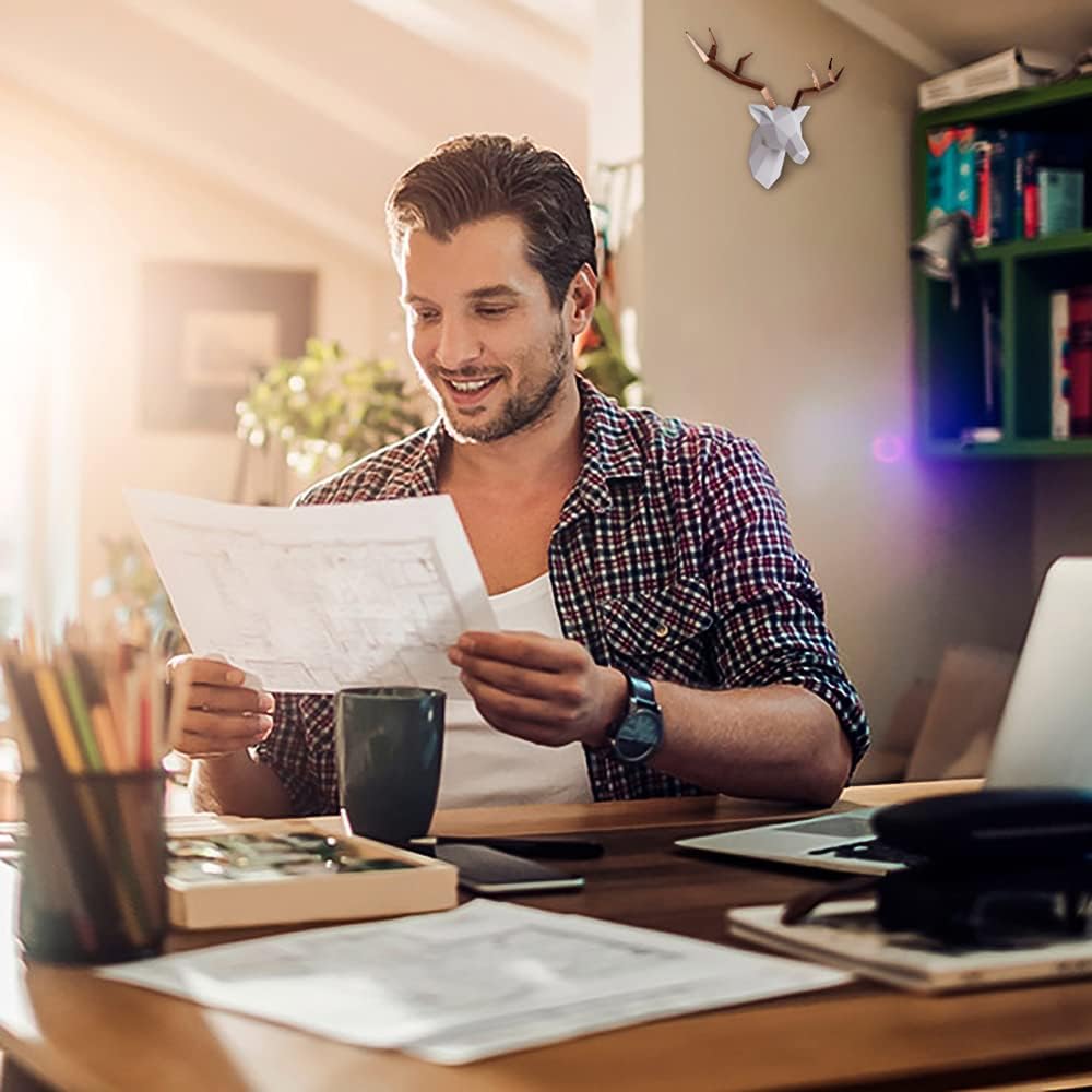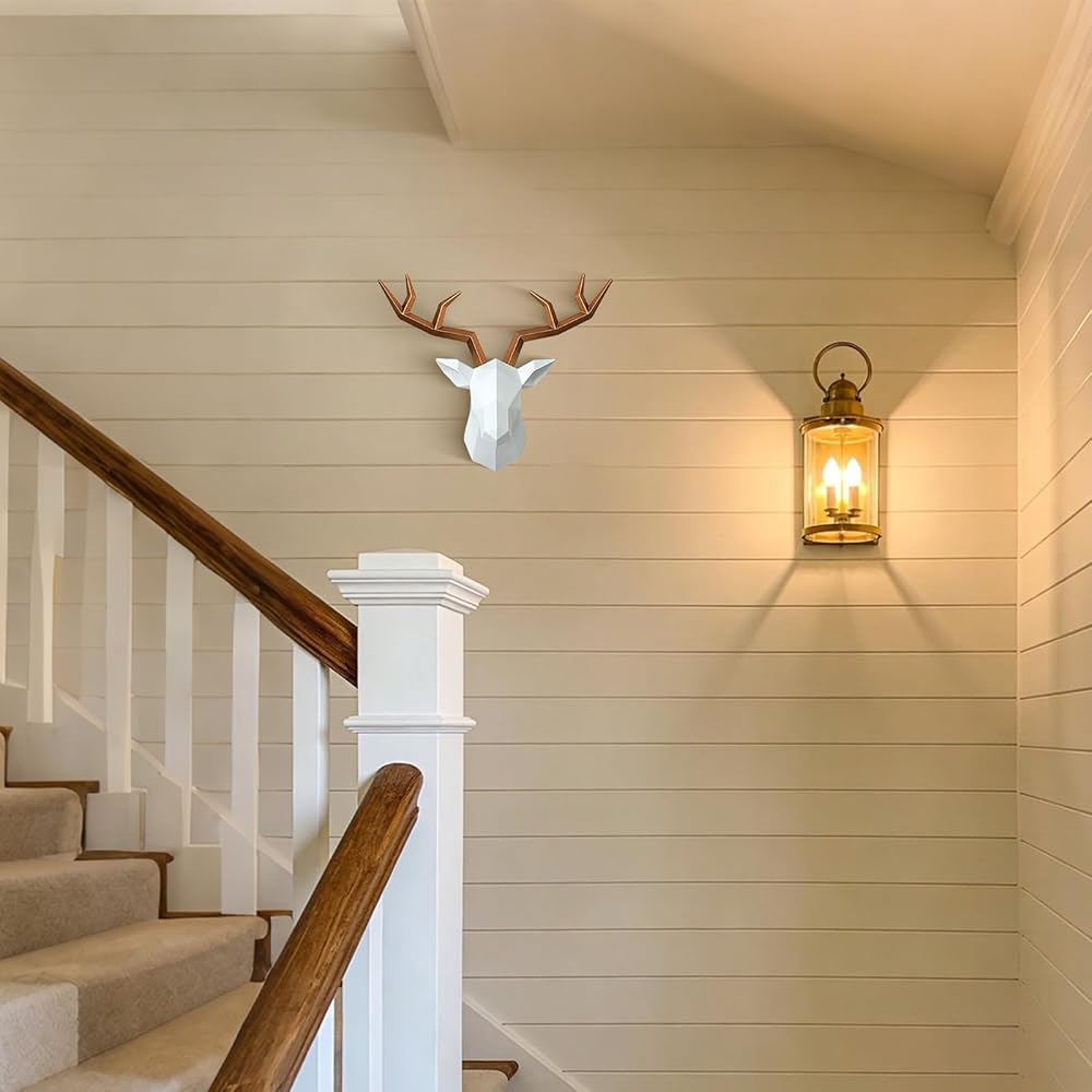 🍂 [EASY INSTALL] - deer head wall decor is easy to install, check the wall, find the position, fix the nail, then hang the deer head with a built-in metal keyhole on it's back.