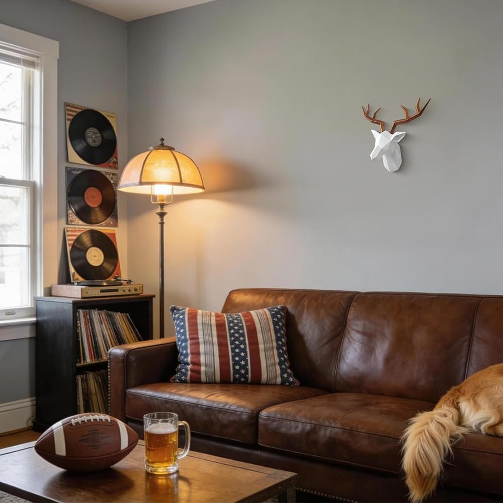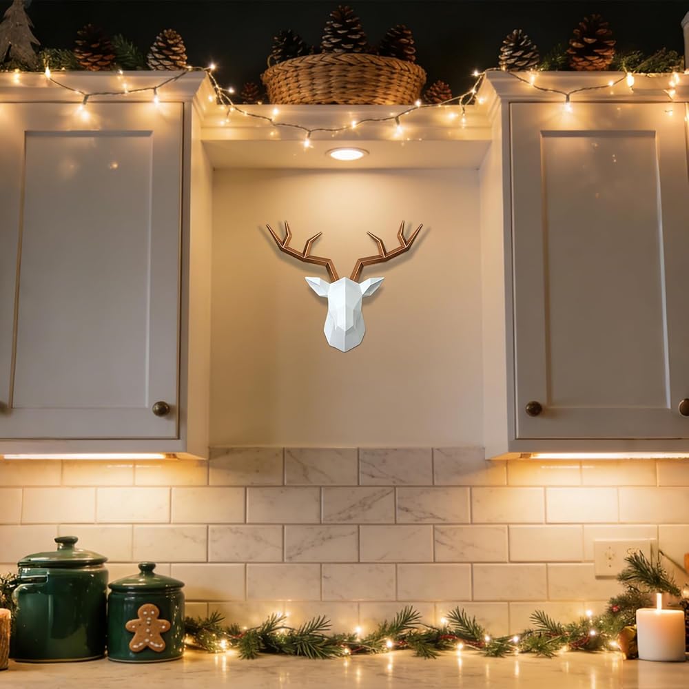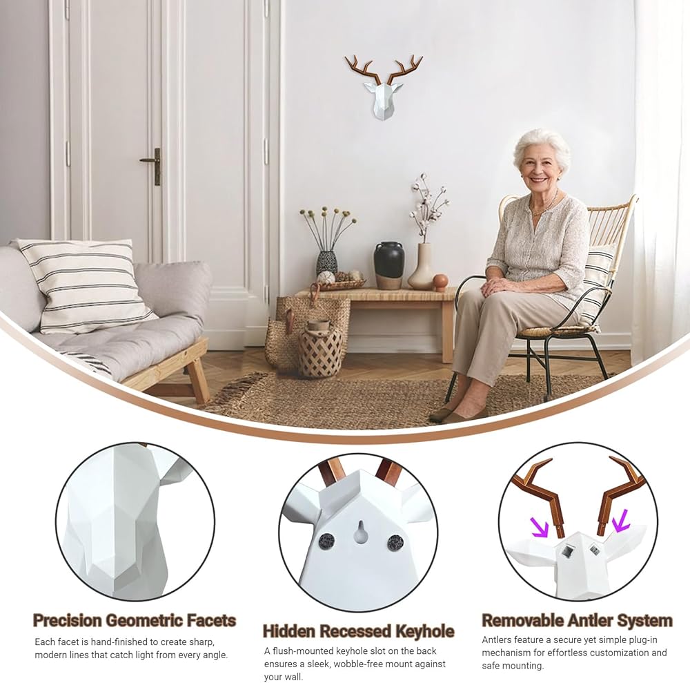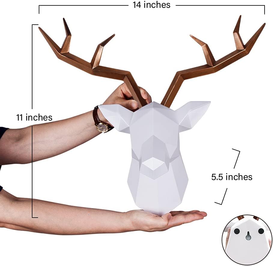 🍂 [GEOMETRIC DECOR] - 11' Height, 14' Wide, 5.5' Deep | Antlers can removable, this wall mounted deer head wall decor adopts innovative geometric design elements, exquisite workmanship, realistic appearance, simple and elegant.