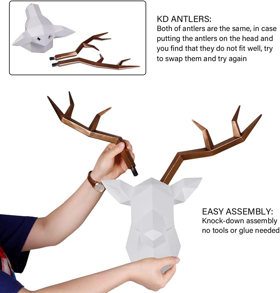 🍂 [BLACK SCULPTURE DECOR] - eye catching deer antler decorations for living room, bedroom, kitchen, hallway, hotel, bar...white deer head with 3 colors antlers (copper, white, black) for more choices.