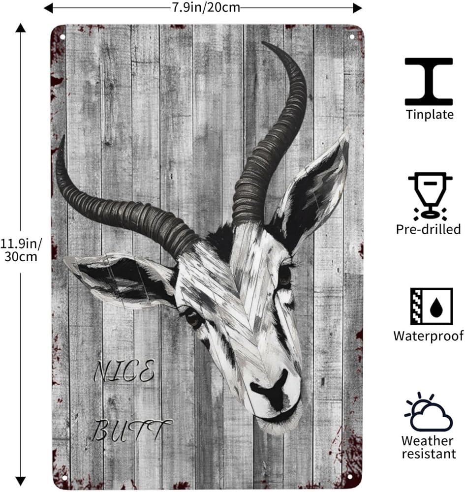 Phonily Funny Antelope Metal Tin Sign Antelope Nice Butt Wall Art Retro Antelope Wall Decoration for Bedroom Living Room Cafe Kitchen Bathroom 8Wx12L Inches