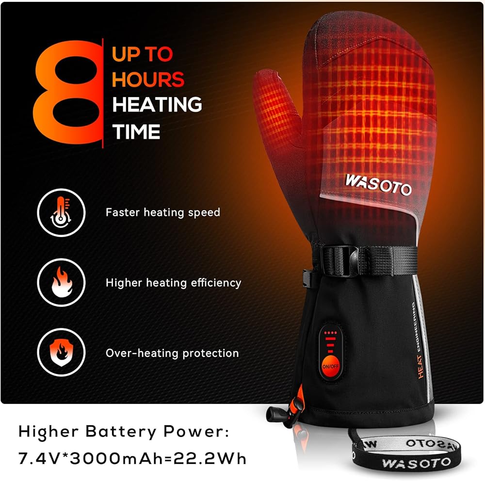 Heated Mittens Gloves for Women Men 7.4V 22.2WH Electric Rechargeable Waterproof Ski Gloves for Winter Work Skiing Snowboarding Hiking Fishing Camping