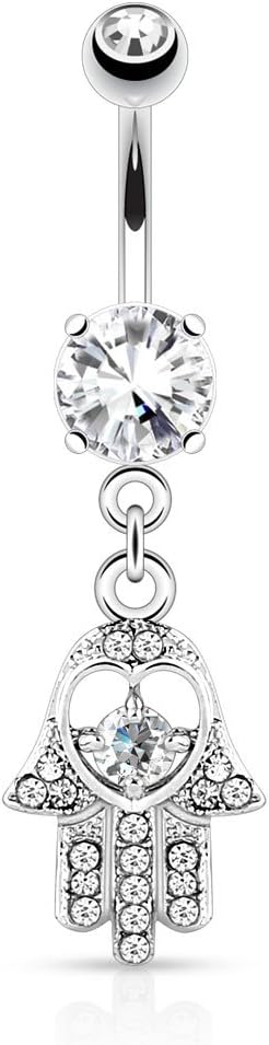 - STYLE: CZ Crystal Hamsa Hand Dangling Belly Button Ring