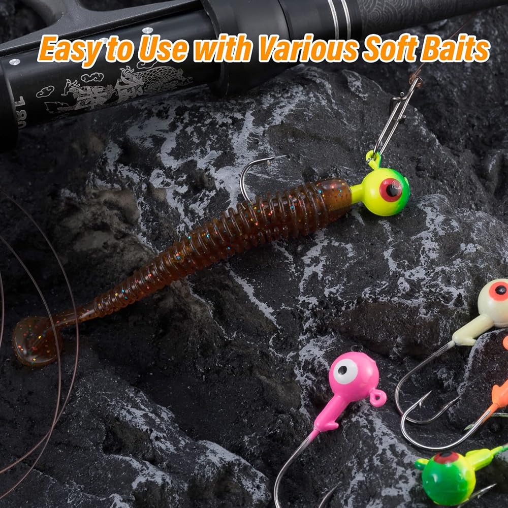 【Innovative Anti-dropping Design】 The convex part of the hook shank tightly locks the soft bait, which effectively prevents the soft bait from falling off.